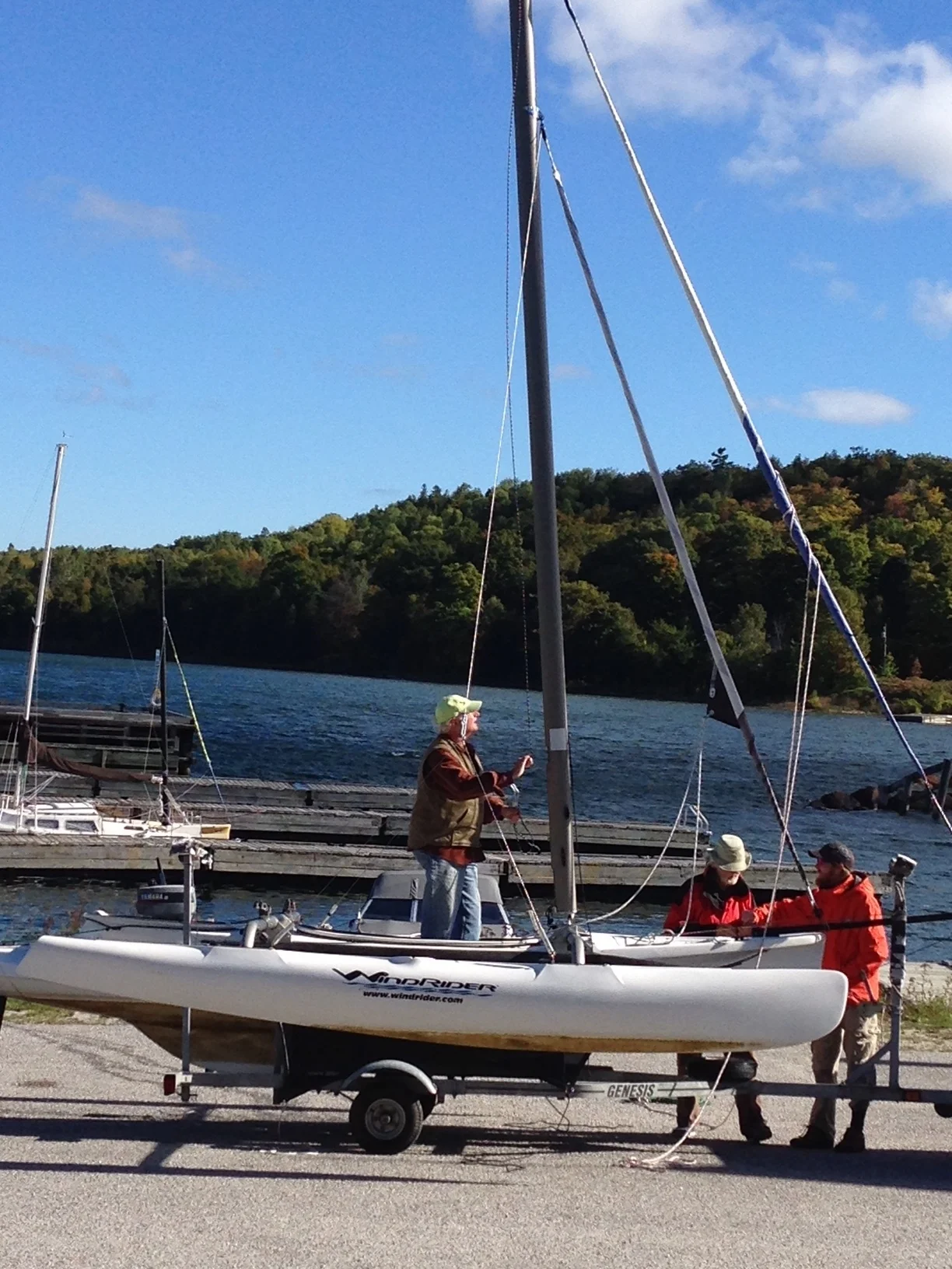 Thrashing trees, roaring surf. Not the marvelous quiet we know so well—but still brisk and bright, and invigorating, especially an outside shower just after sun-up. Wolf and Patrick helped us haul the Windrider this morning, and this afternoon she was stripped and cleaned and prepped for her winter nap. There's woodsmoke in the air, but, sadly, almost all of it is heading quickly south.