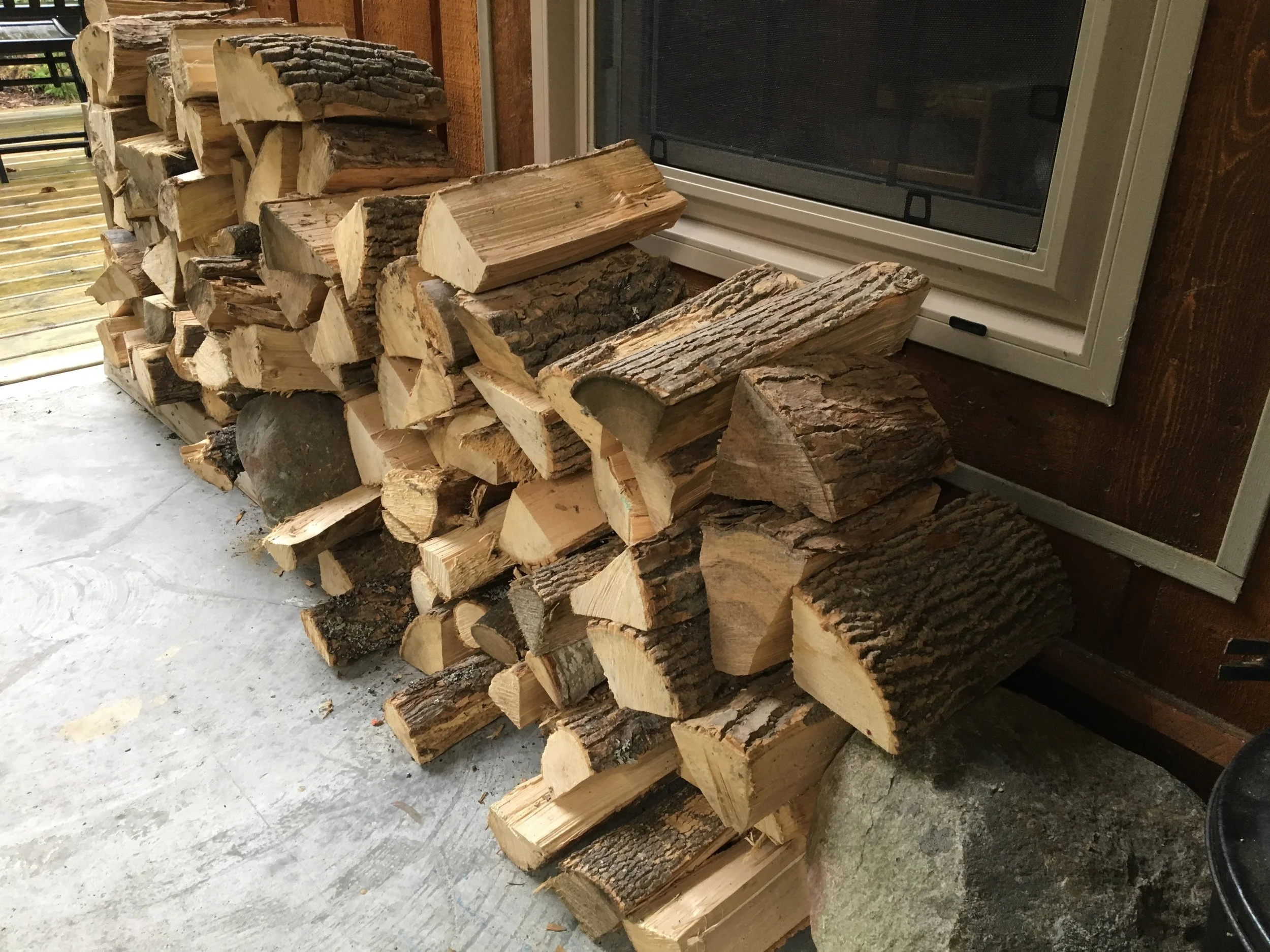 Today: log splitting and woodshed replenishment, small engine winterizing, porch plastic-wrapping. As with all wildlife, preparation is key.
