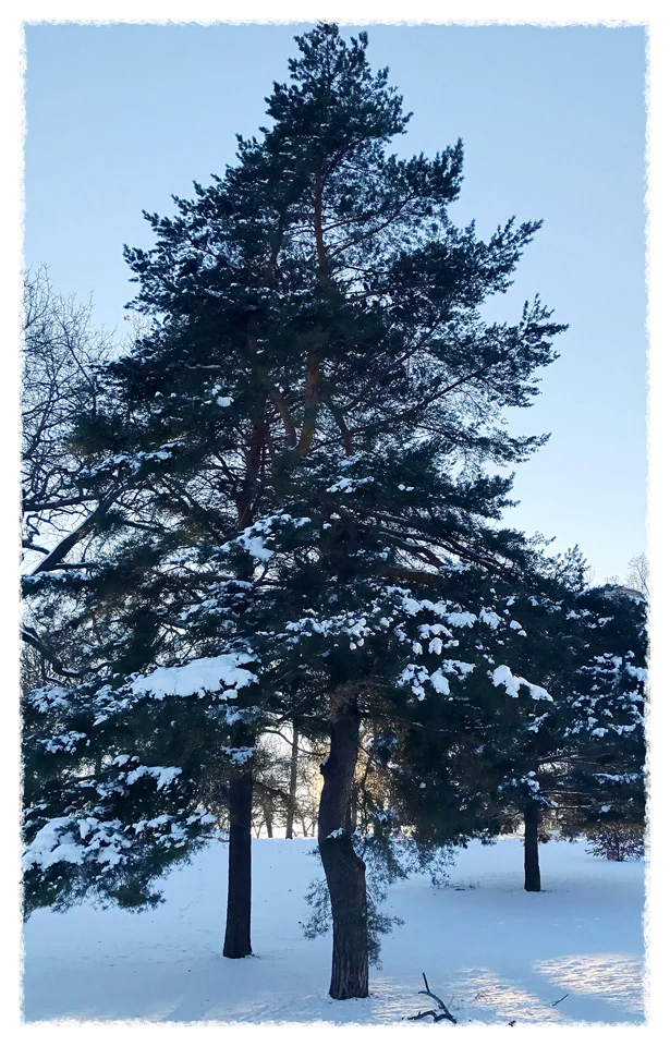Last night’s snow, the first of the season, now goes down on the calendar as the beginning of winter, this year. Four to five heavy inches, flocking the trees, covering the remnants of fall, giving the luster of midday to the very long night, revealing, at sunrise a world transformed—and reminding me to put out the birdfeeders.