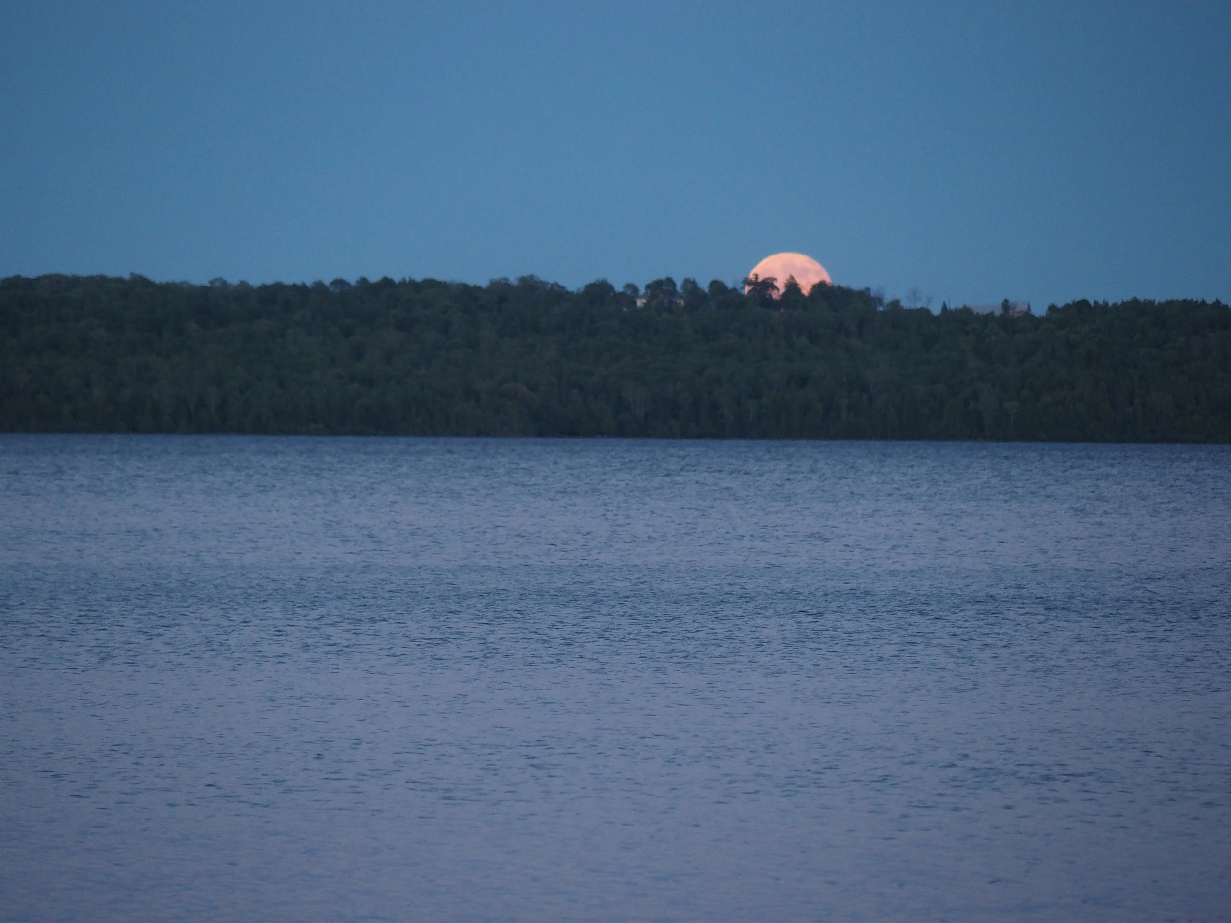 Last night's strawberry/solstice moon. And while we were preparing to watch the rise a pair of lunes (I mean loons) paddled by.