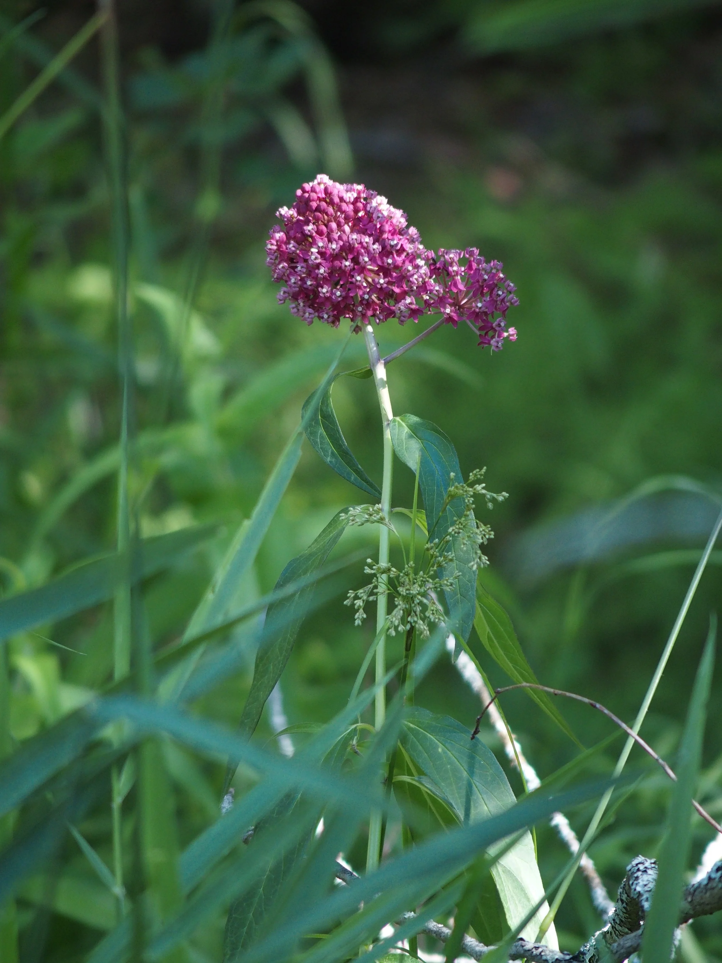 Lots of milkweed and little moisture. Another day of perfect weather. Morning spent on puttering projects, with an afternoon triathlon—walk the dog, ride the bike, paddle the kayak. A pair of goldeneyes making themselves at home on the boulders in front of Pinebox.