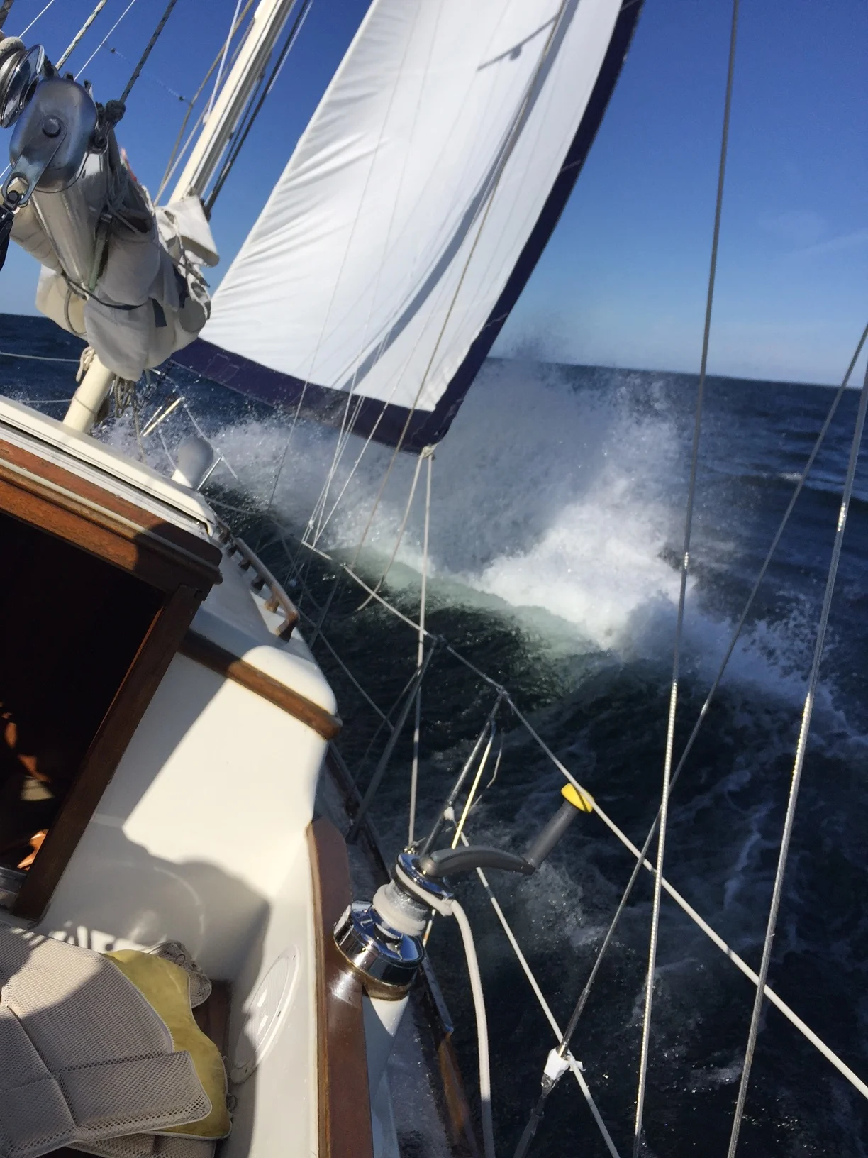 Hard work with eight tough tacks, but still lots of fun, and absolutely beautiful. We did see one other boat—heading downwind.
