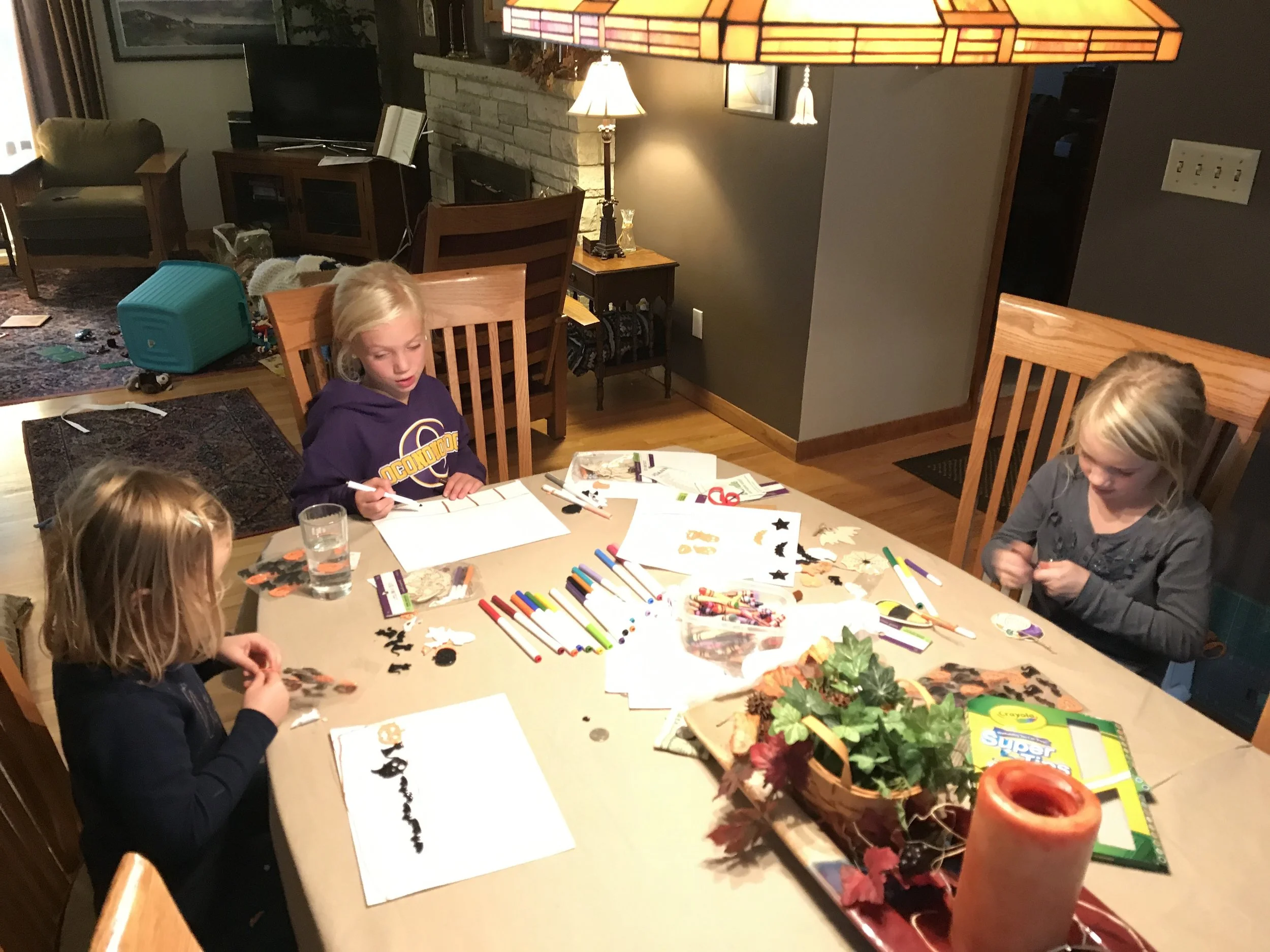 Play Day and Sleepover October 14, 2017 by Jim Nies Busy Barns, UWW, cake baking, art projects, book reading. And all on a rainy day.