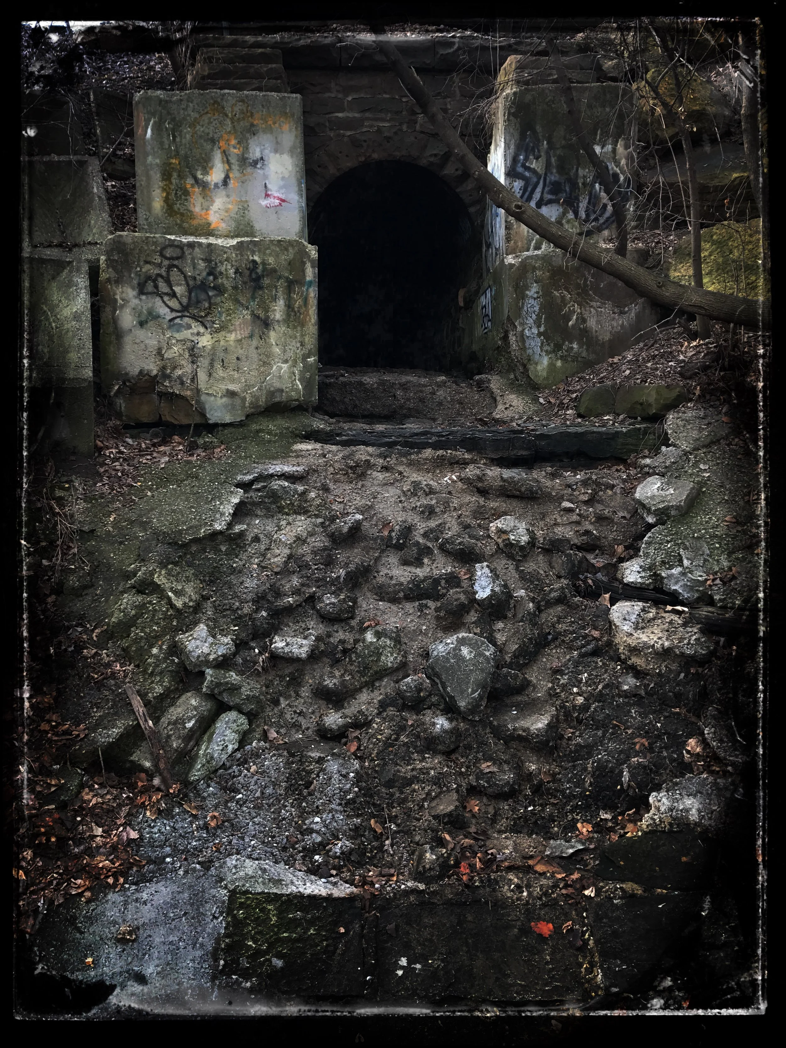 Tunnel under railroad tracks along the Rock River trail in Janesville. Pax really wanted to explore.