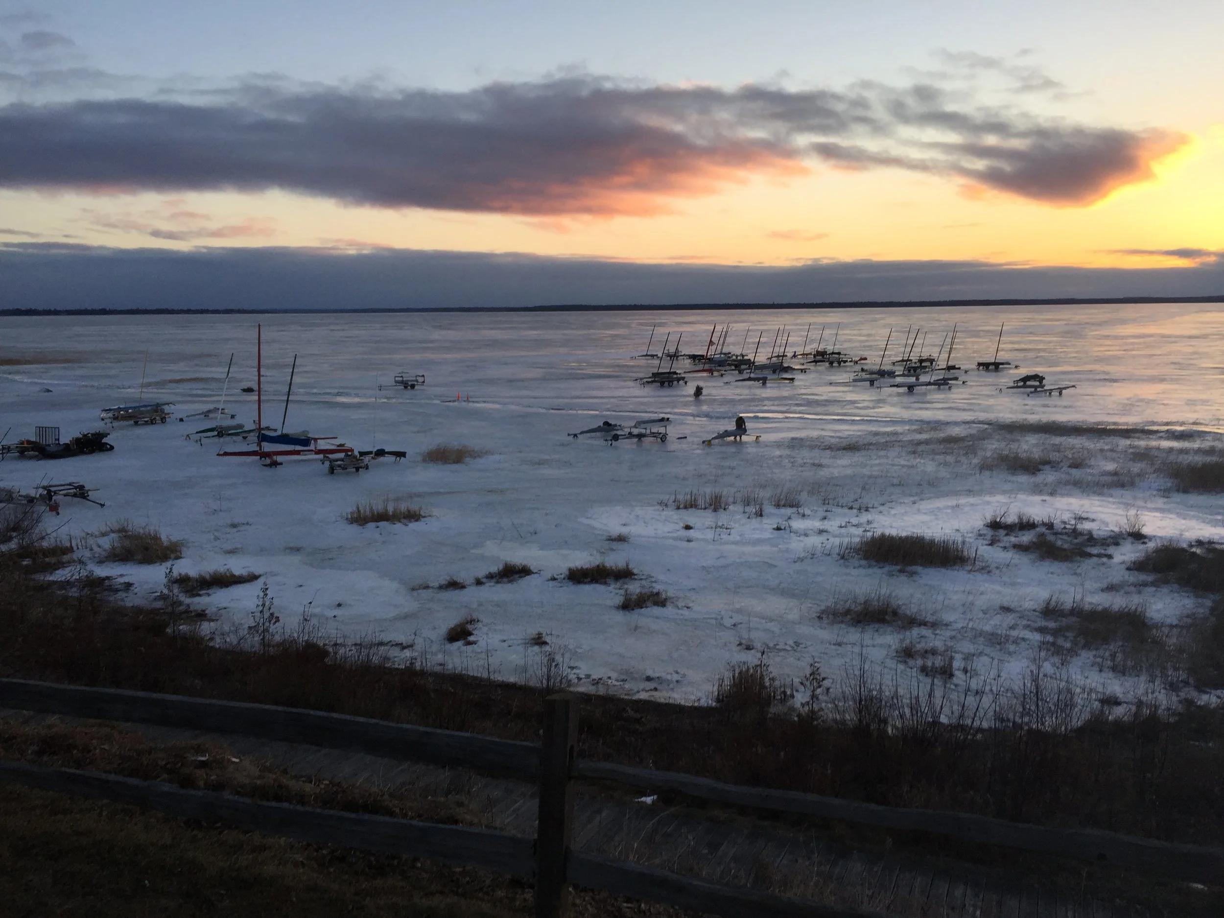 Bri and Tony at the Nite national regatta on Little Bay De Noc off Gladstone, Michigan. Thirty-five boats. The guys will not win hardware, but they are doing well and having fun. Cold and windy there today—and here, too.