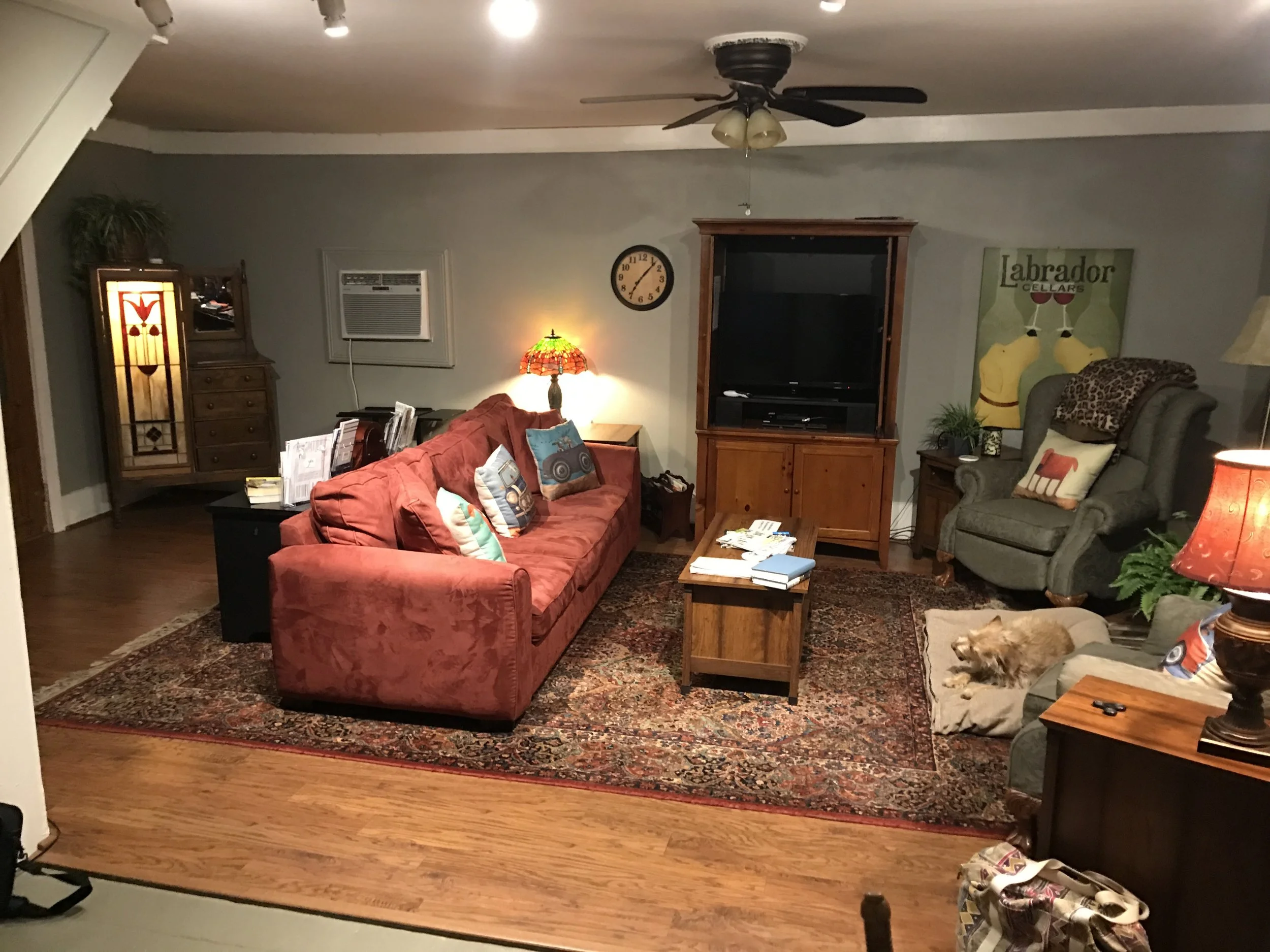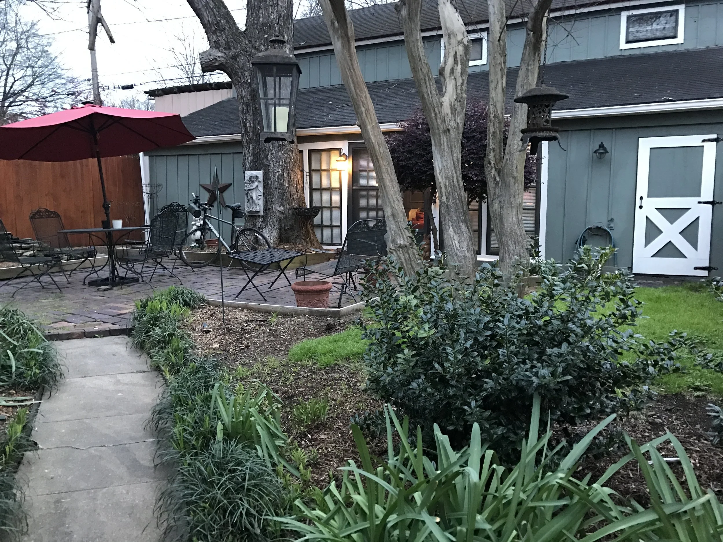 Now ensconced in an 1882 carriage house in old Little Rock. A remarkably nice place—spacious, well appointed, lots of comfortable furniture, two bedrooms, two baths, a well stocked kitchen, and a big fenced-in garden-yard where Pax and Bear (a cute Yorkie) can pal around.