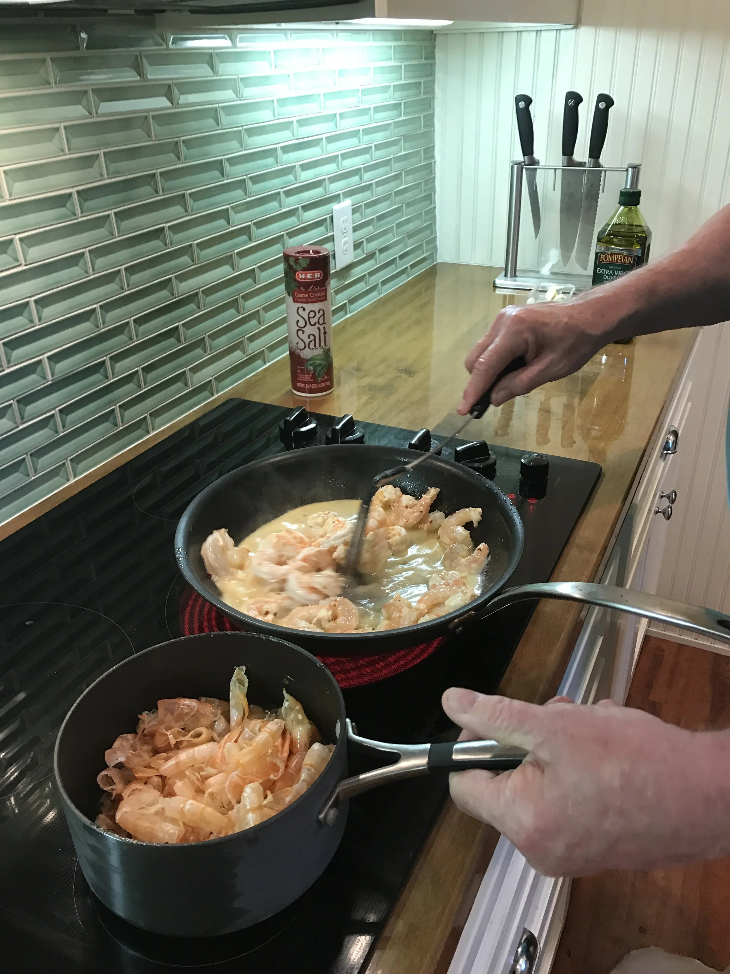 Shorts and t-shirt weather, and even then shade felt good. Nice way to segue out of winter. Shopping, walking, bike riding, shrimp for dinner, basketball. Had to spray all the salt and road grime off my bike but after that bike riding was great—going one direction. (Almost impossible the other way.)