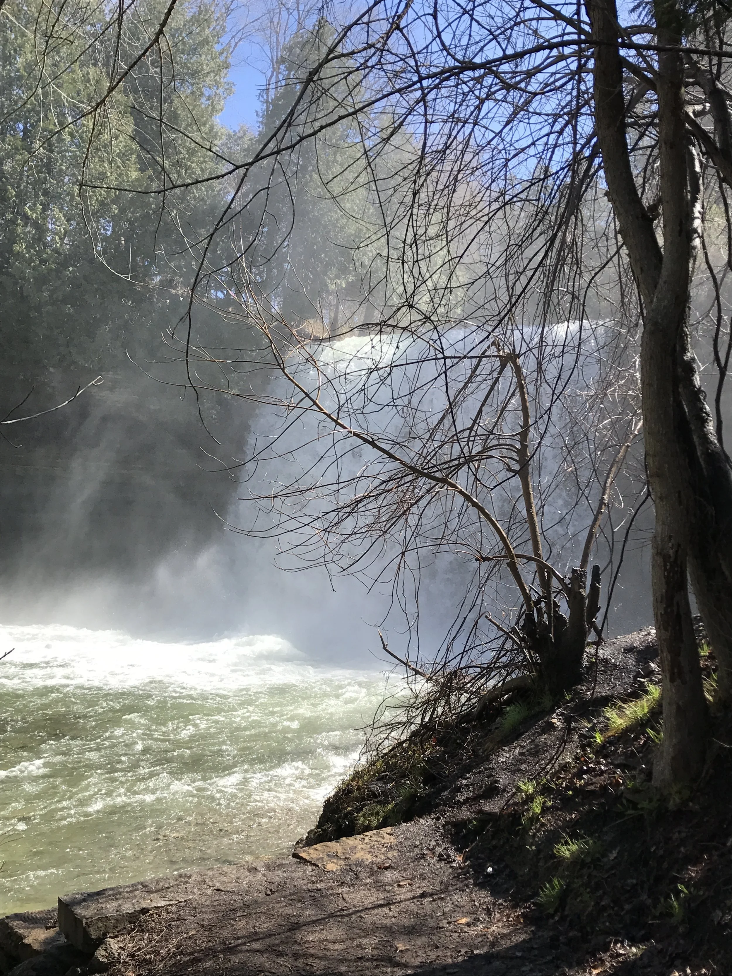 Peas planted, a few projects worked on, a first visit to the dump, and then a walk up to the falls—all on a bright, windy, and very chilly day. Lots of water falling, and everything chisled in sunlight.