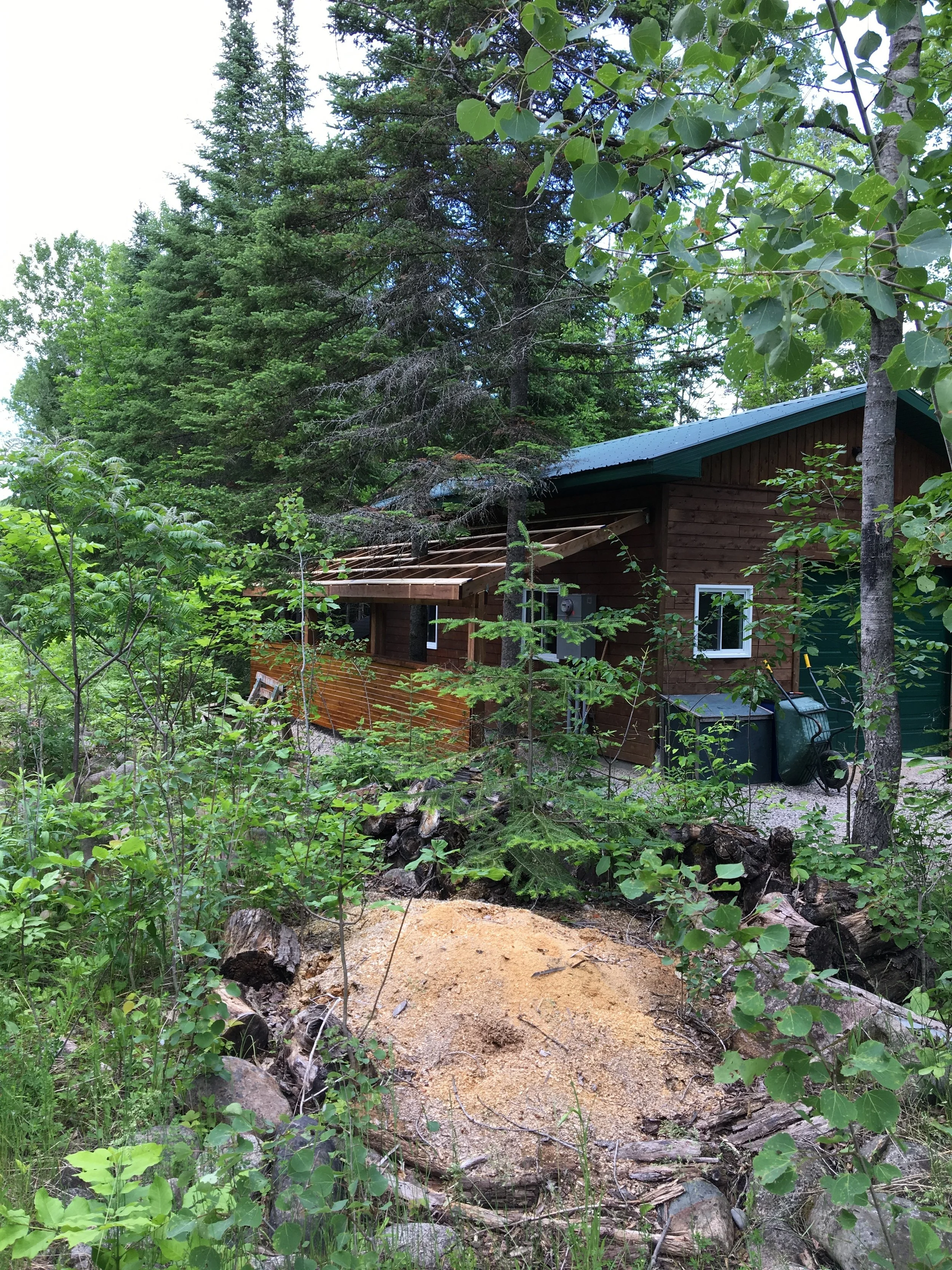 Or almost all day. Light but continuous. Good for grass, garden, and forest. Also perfect for leisurely breakfast, reading, writing, sewing, and napping. But then by late afternoon a rapid clearing to sunny and steamy. Must have been a warm front.