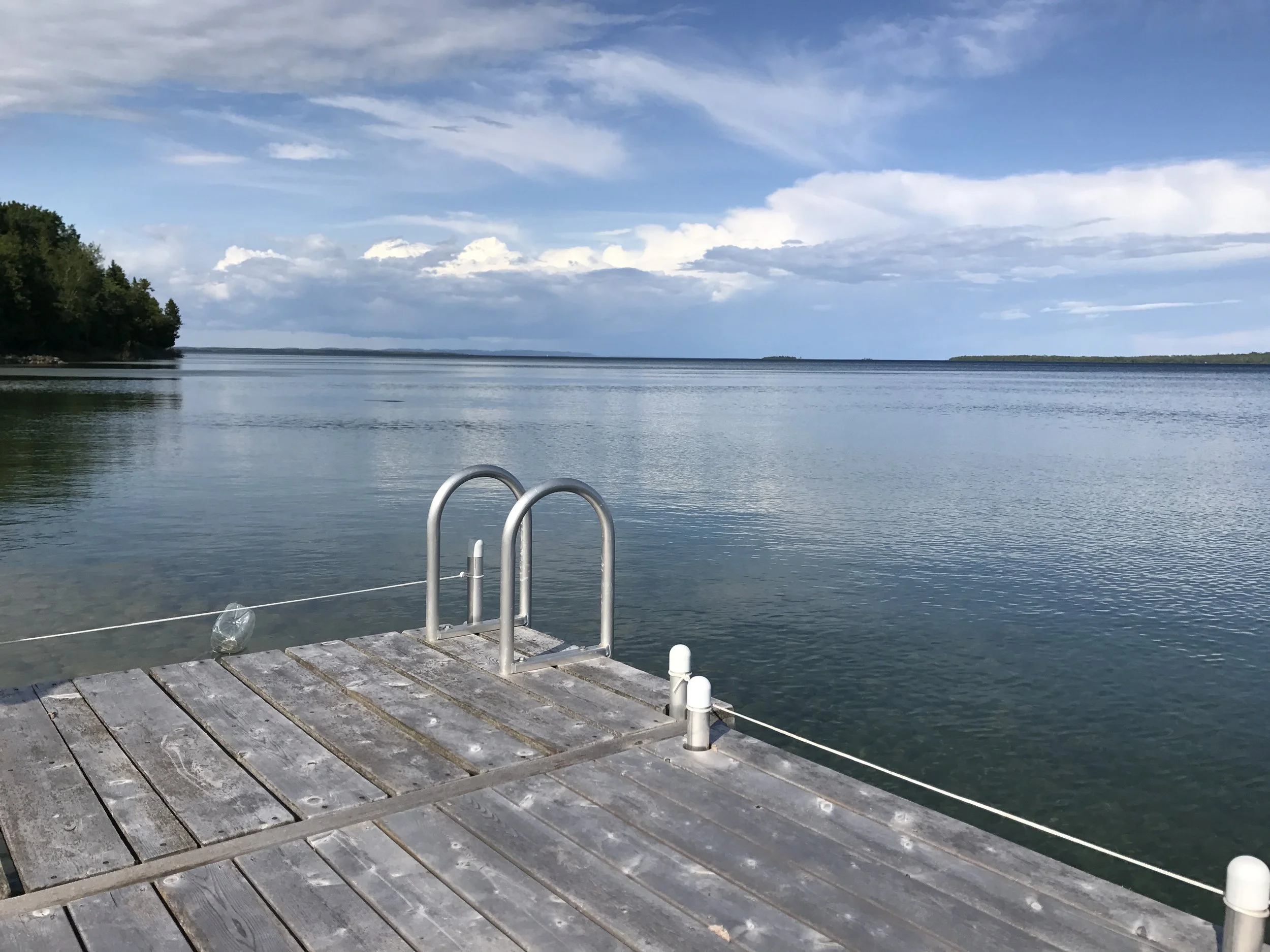 Our pier fully operational, along with almost everything else on the premises. Ready or not for summer, which starts, officially, with Canada Day (this year #150). Kagawong dock open for business, beaches plowed, chuck wagon emitting smoke, etcetera, and so on. Now, about the weather...