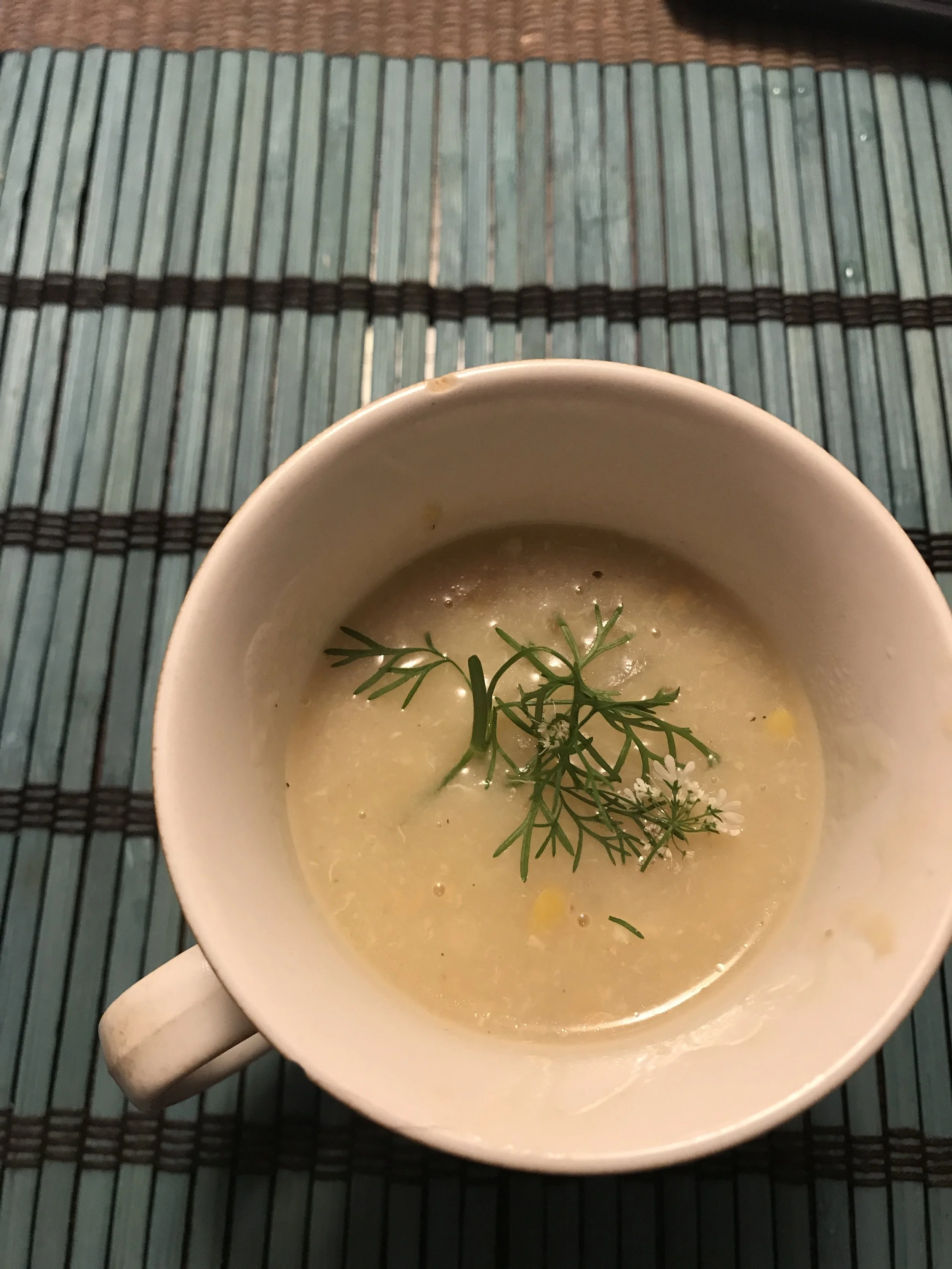 Did I forget to mention the homemade corn egg drop soup with homegrown cilantro?