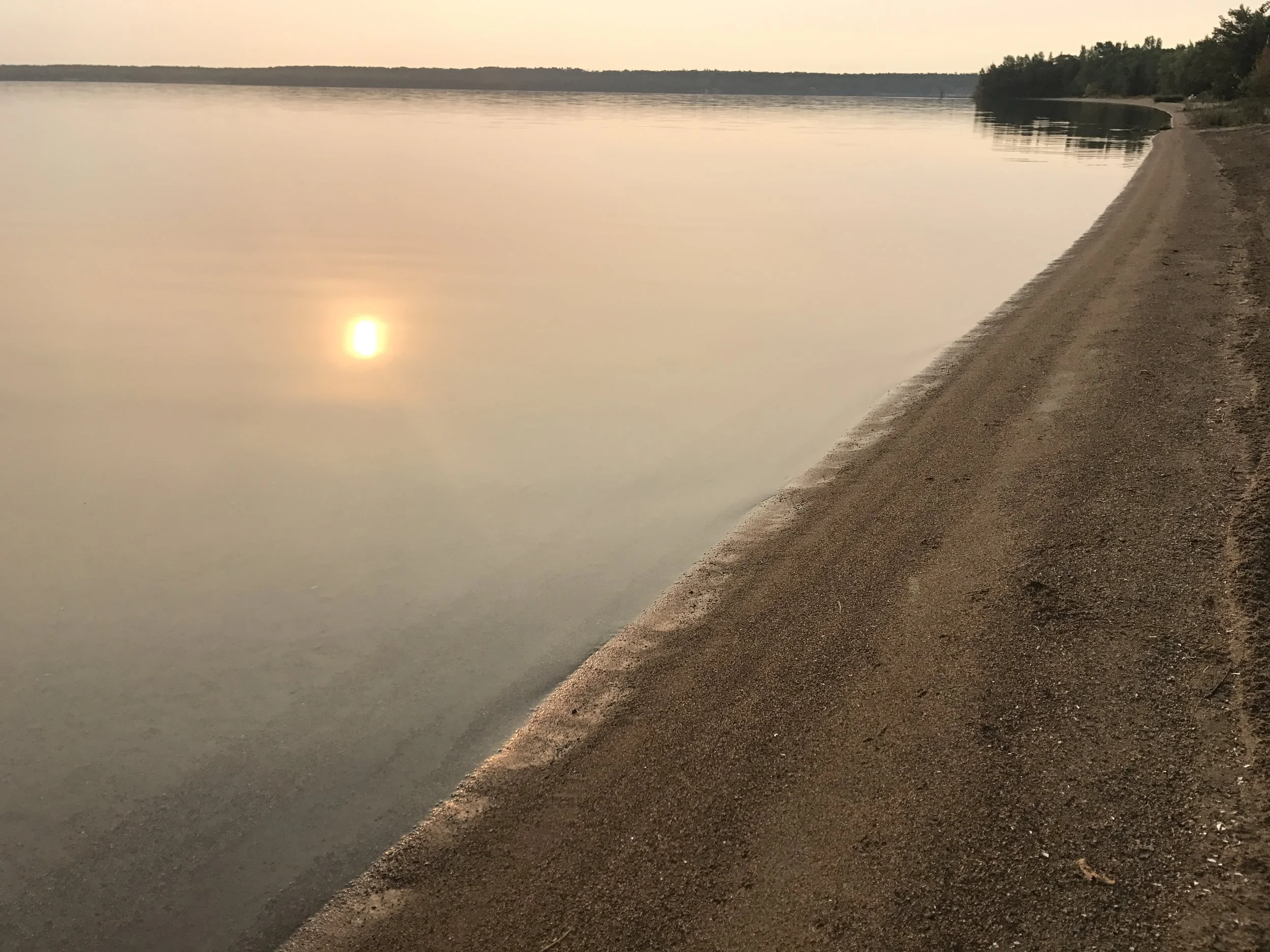 ...weather system. Calm. Warm, and humid, and sunny (with a strange high cloudiness). Things getting dry, and water level dropping (partly, I believe, due to high pressure pushing the water away from here).