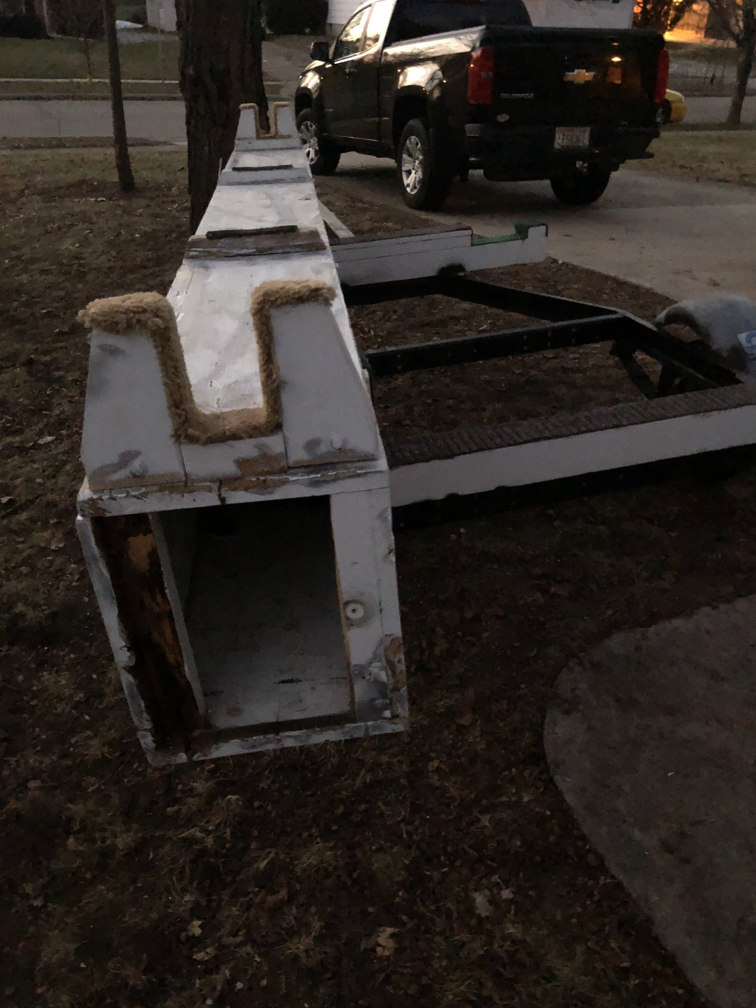 Actually, the new trailer is a bit on the old side, and the back panel of the accessory box has proved to be rotten. Along with that, the metal frame needed wire brushing followed by Rustoleumizing. And, as always, a new wiring harness is required. What could be more fun than projects like these?