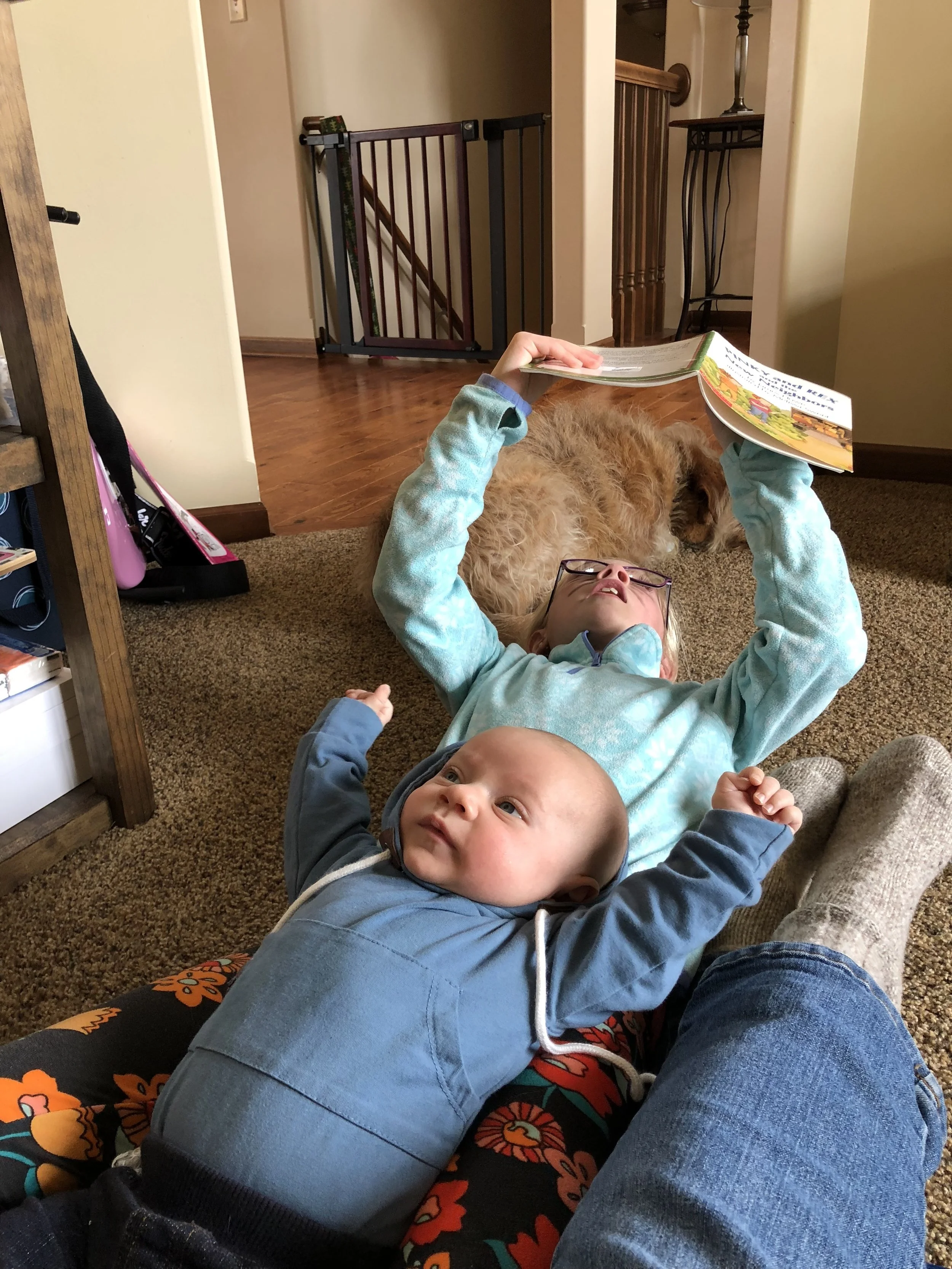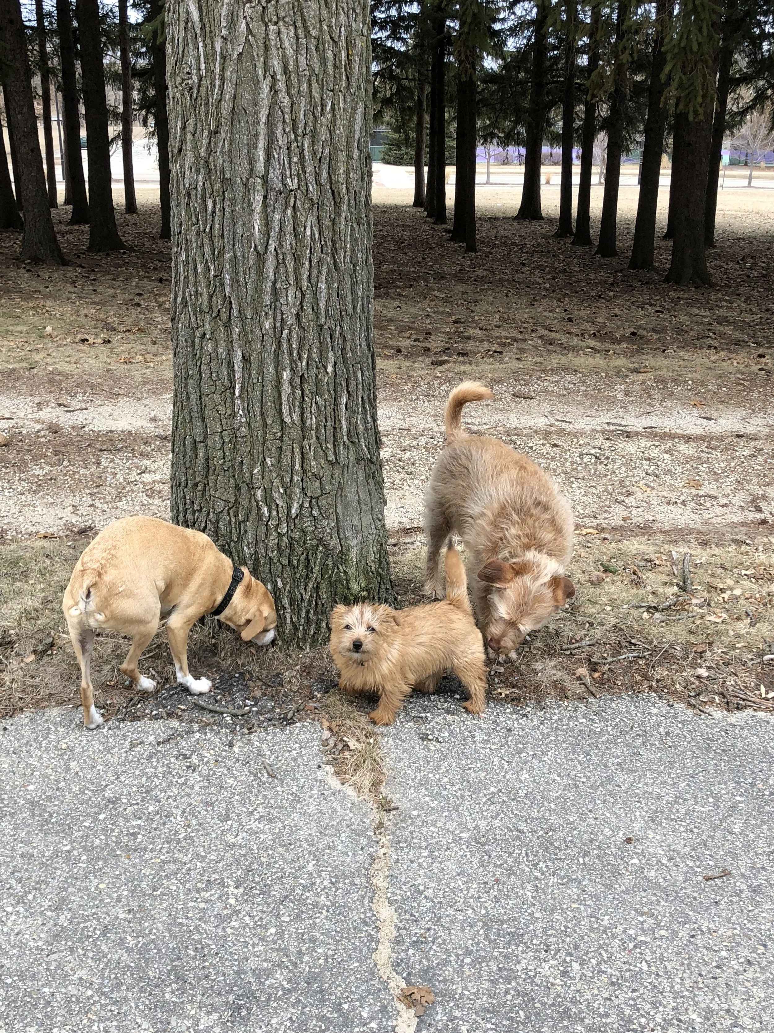 Not nice out. Therefore—a dog break, and visit with the Oconomowoc kids.