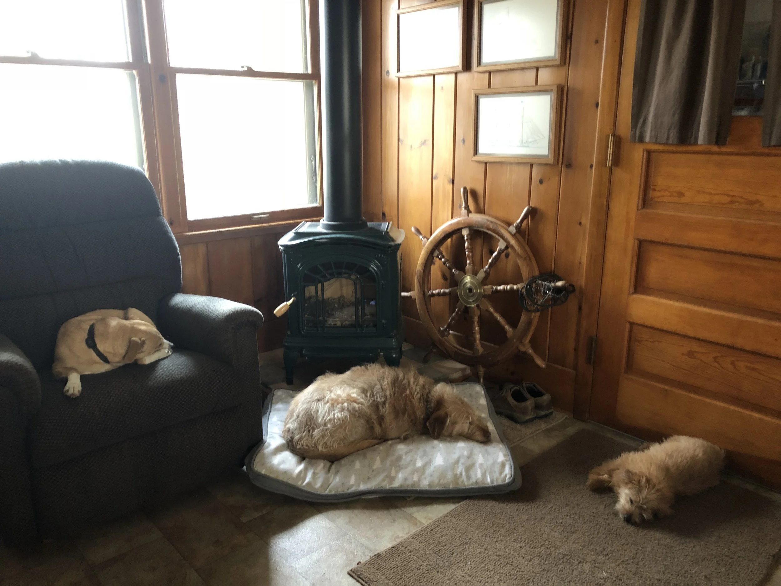 Loud and lots of it. So it must be spring. Began turning compost bin number one into compost bin number two but hit hard frost about two thirds of the way down. Mimi raked out most the the garden beds, while I removed the maple glaze coating the truck.
