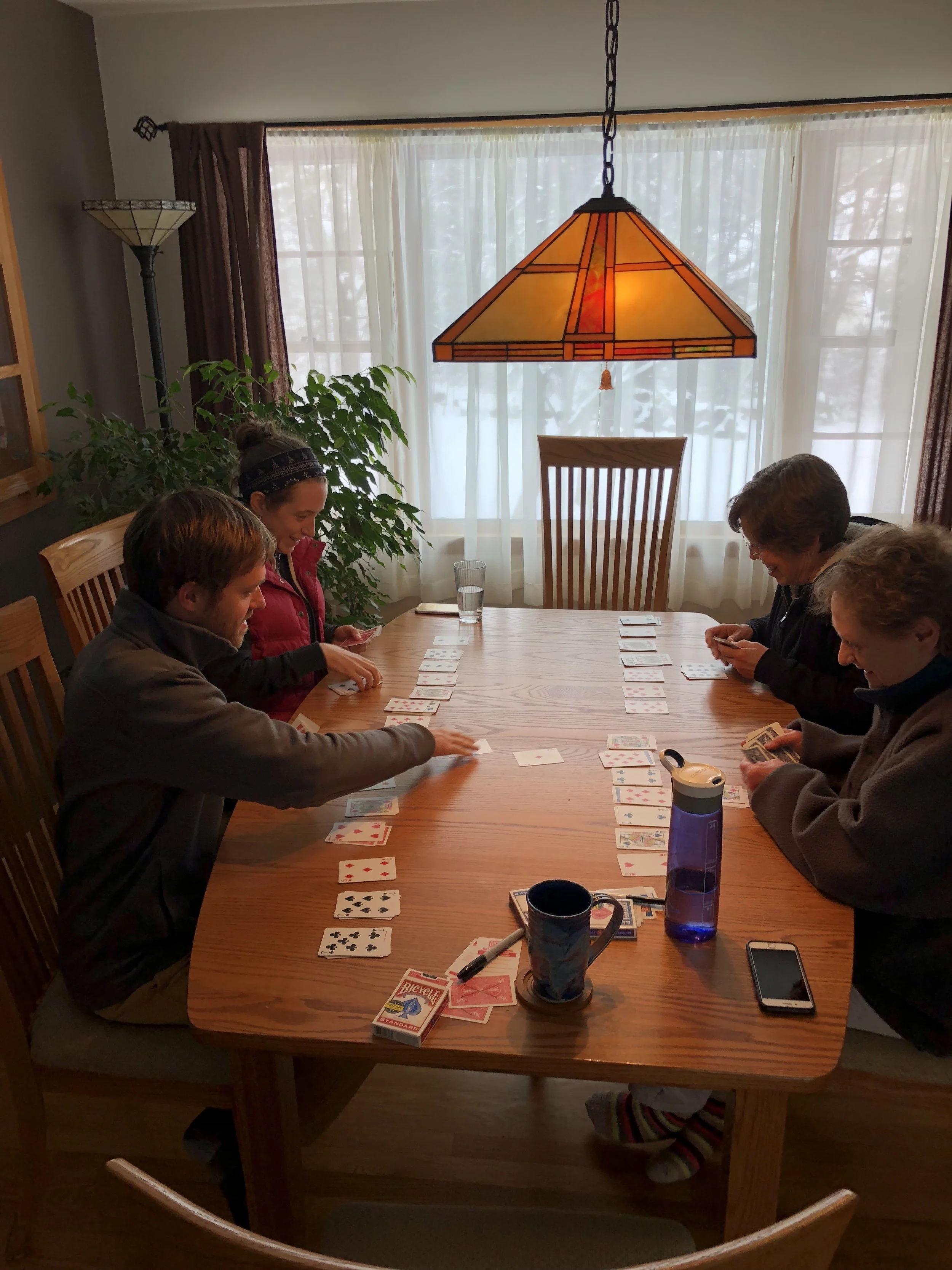 A day of heavy shoveling mixed with card playing (and reading, naps, and conversation).