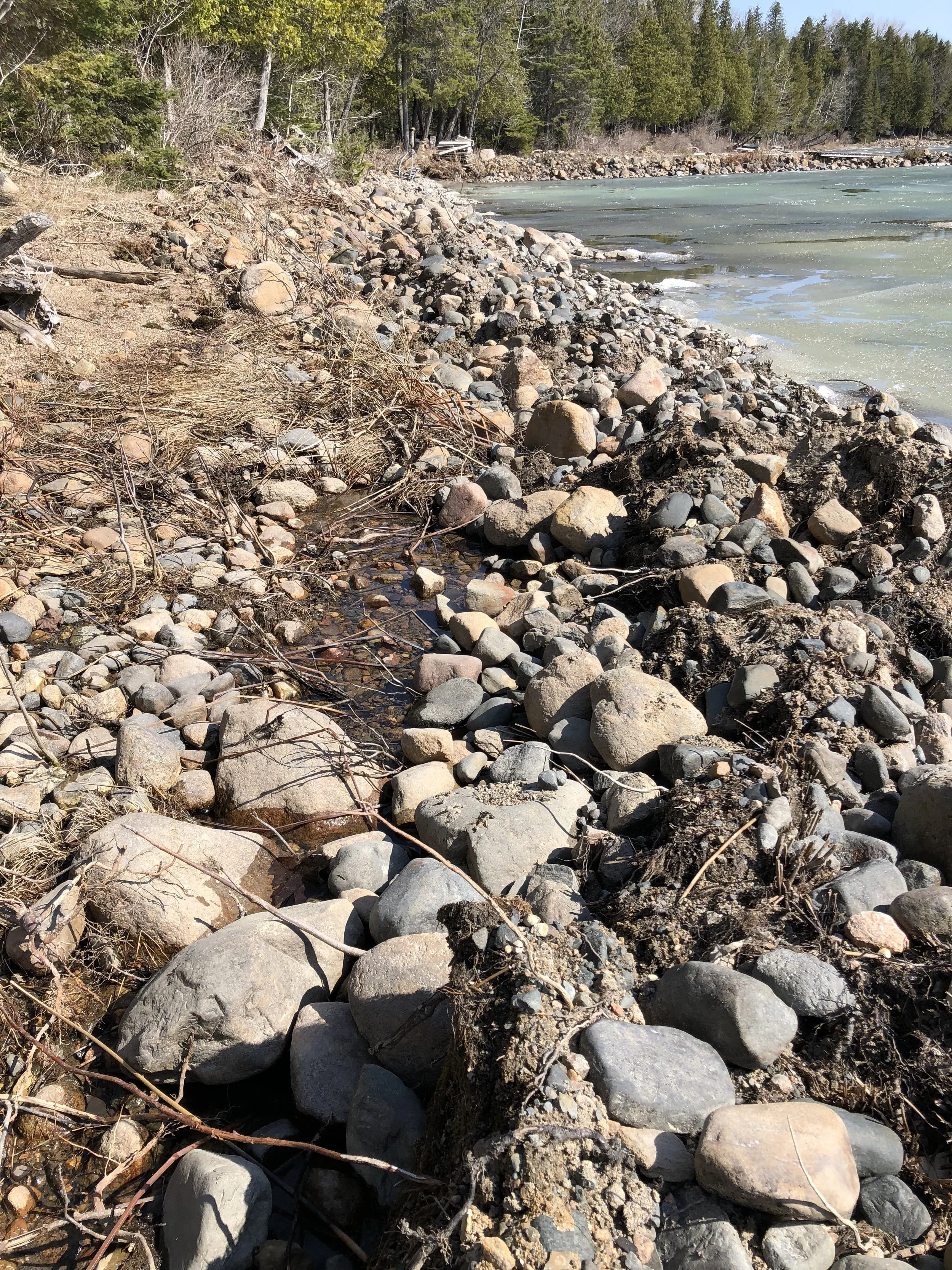 Evidence suggests (see below) that another big ice event occurred when we were not privileged to watch it—the shoreline has been significantly rearranged.