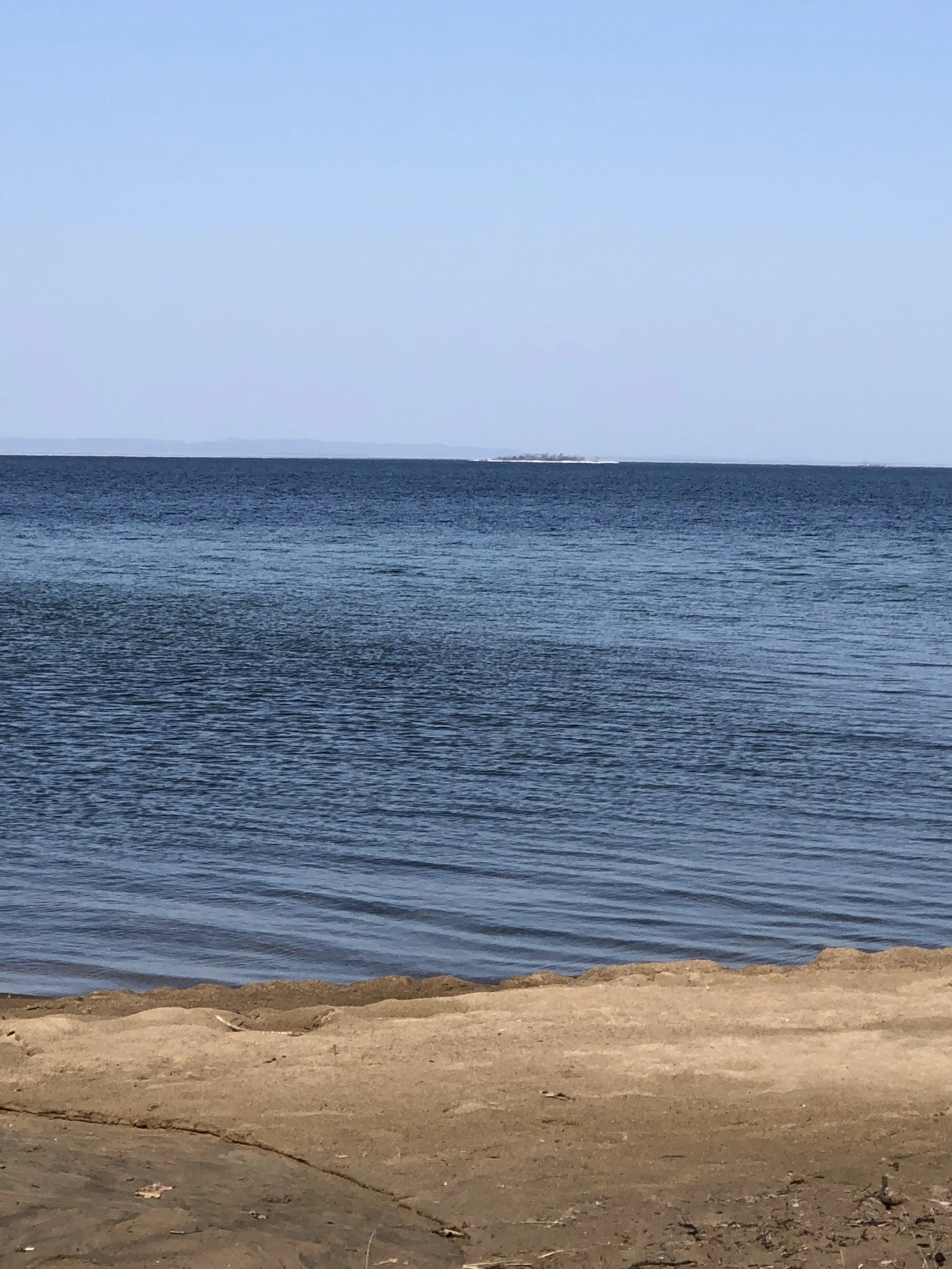 ...now combined with the rustling, tinkling shiver of moving ice. What a phenomenon. To think that a bay this big could freeze solid, four feet thick, and then could, eventually, be reduced by sun and wind to tinkling shards, and back to waves.