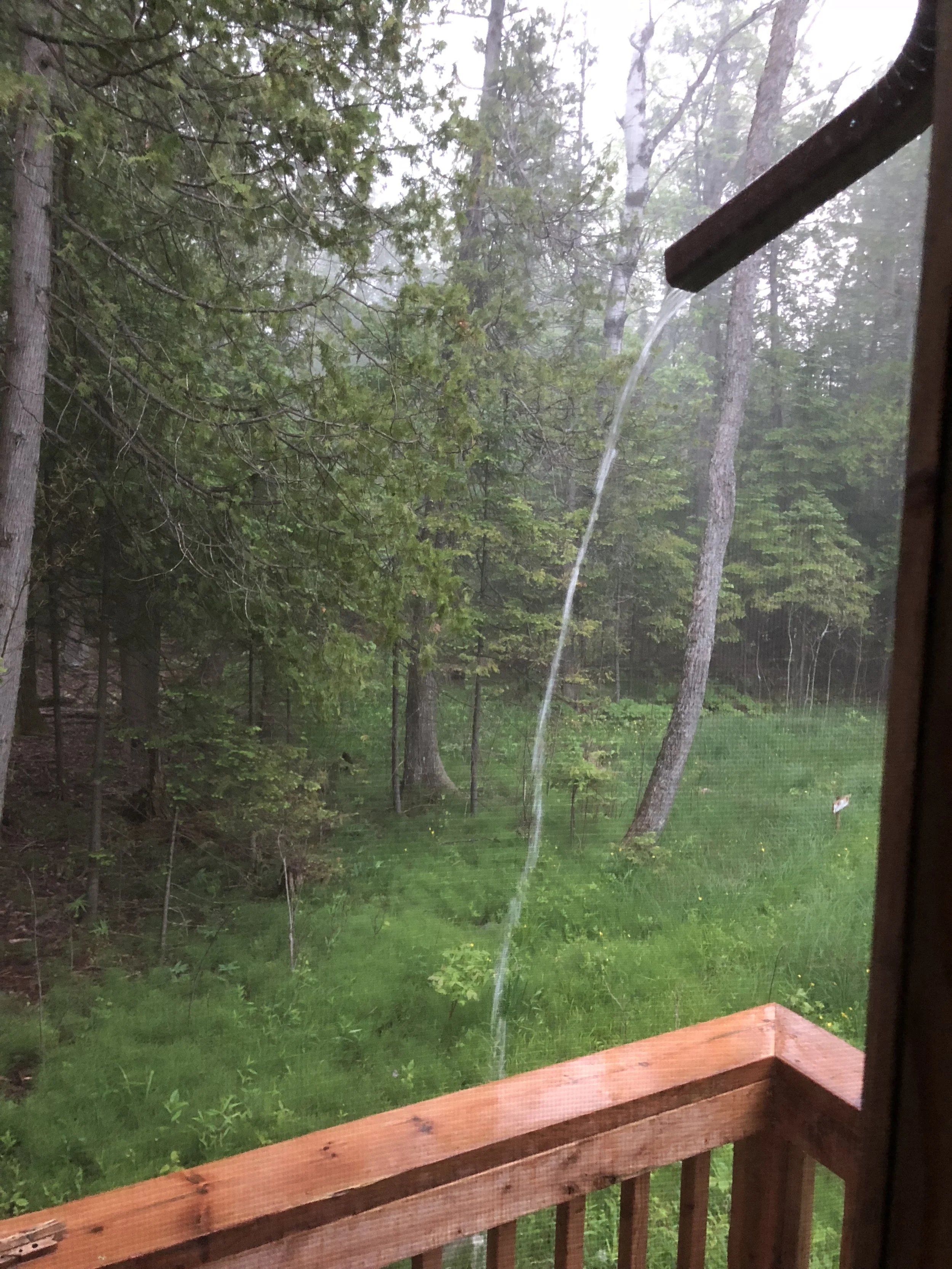 ... is sitting on the screened porch, with a morning cup of coffee, in a thunderstorm—watching and listening as the rain comes raining down.