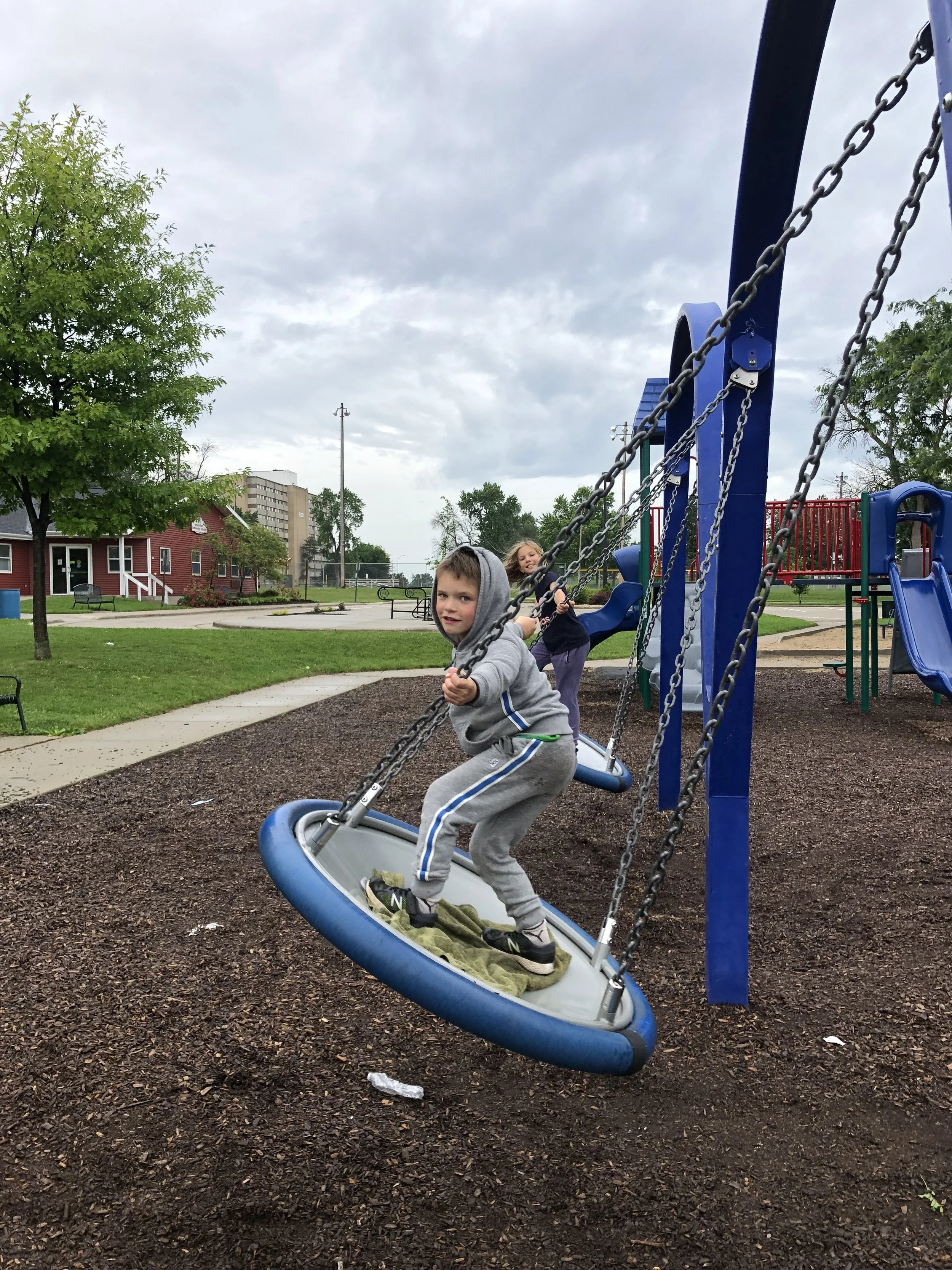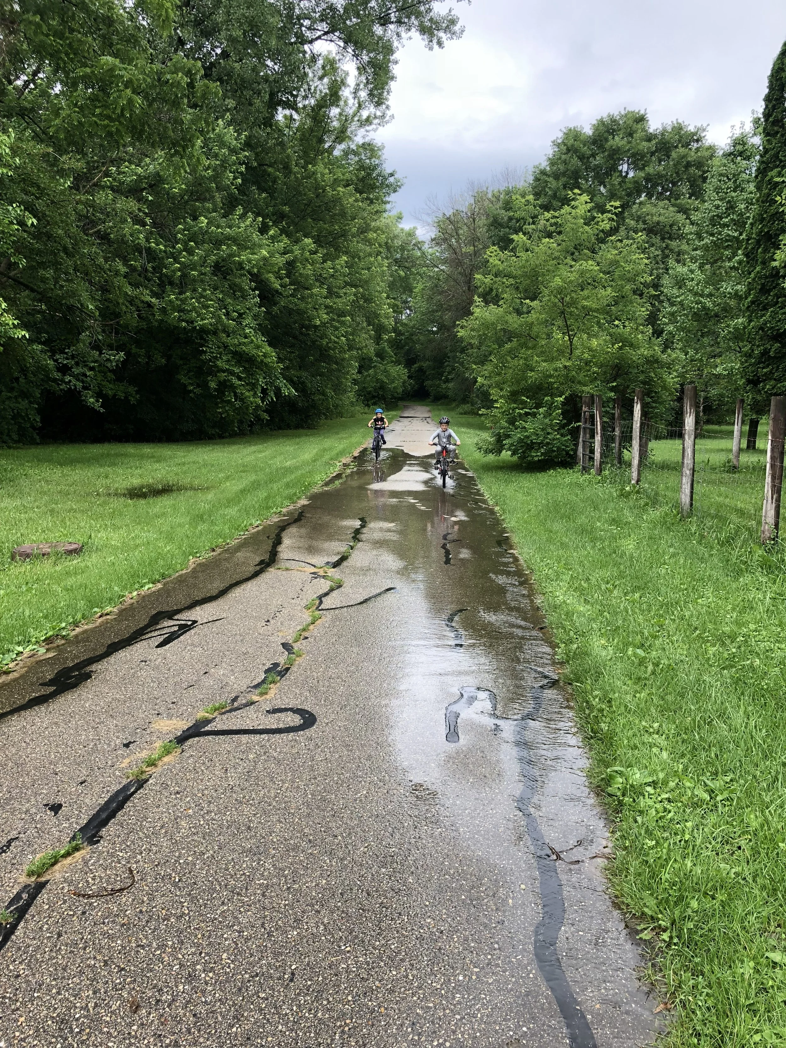 Riders on the Flood June 21, 2018 by Jim Nies Lunch in Whitefish Bay, then wet park and wet ride in Whitewater.