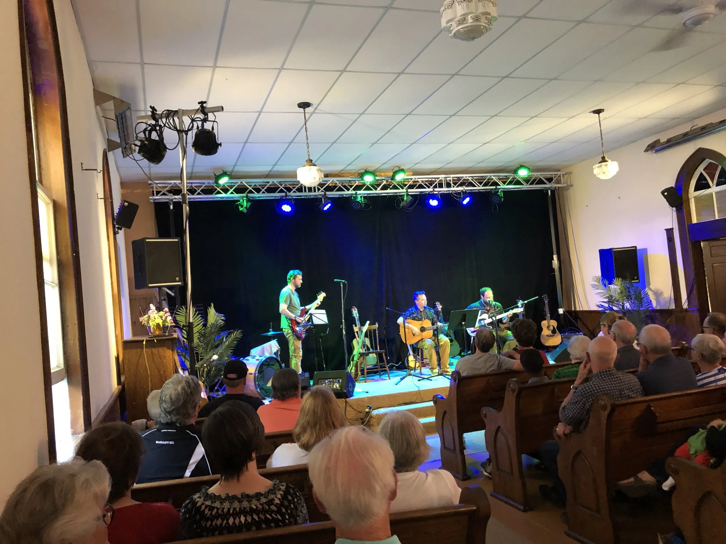 To what was billed as a fundraising concert, in and for the old, defunct church at the top of the hill which is being repurposed as a performance venue.