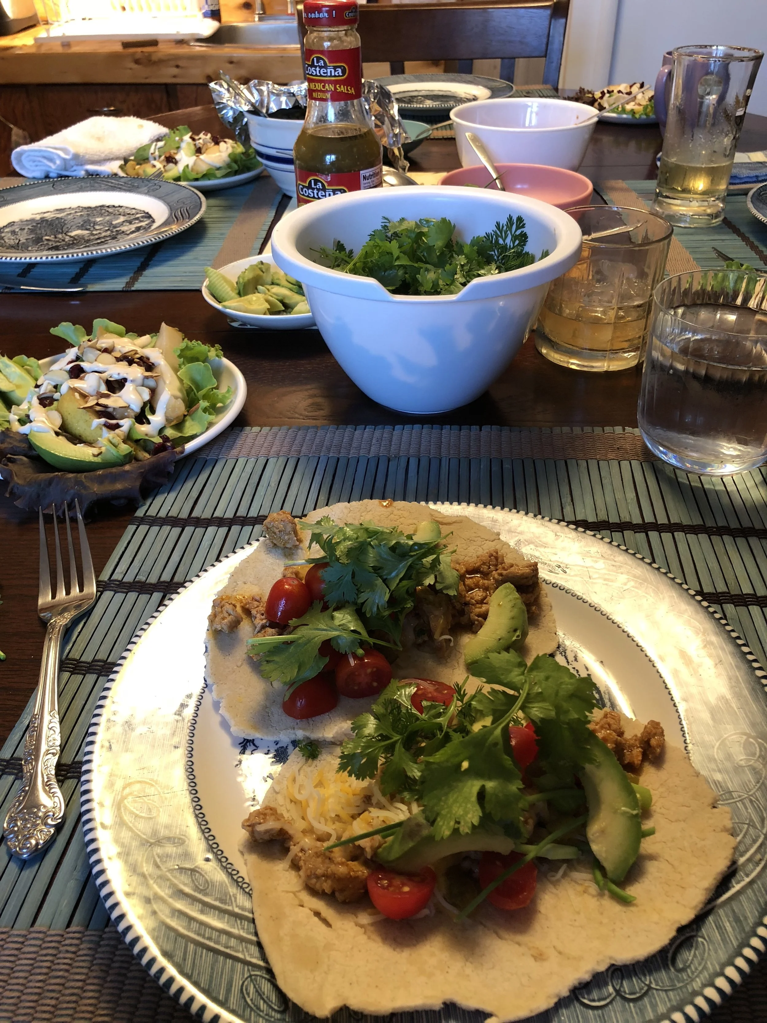 Great Mexican dinner at Pinenox, complete with handfuls of homegrown cilantro.