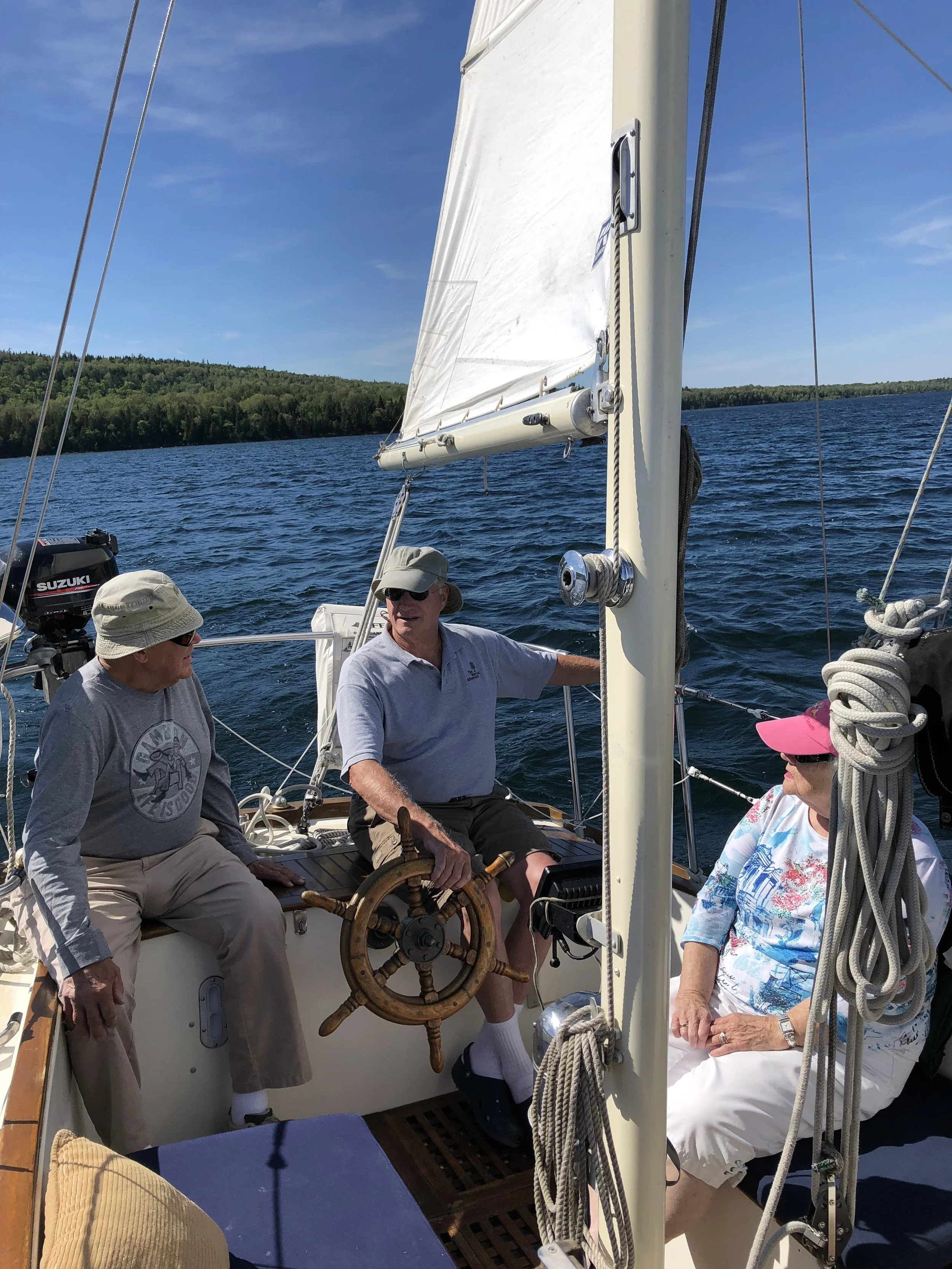 Coffee with Therese in Gore Bay, to discuss and solve all the Islands problems. Then a lively afternoon sail with the Lloyds. The marina is full up (mostly with big power boats).