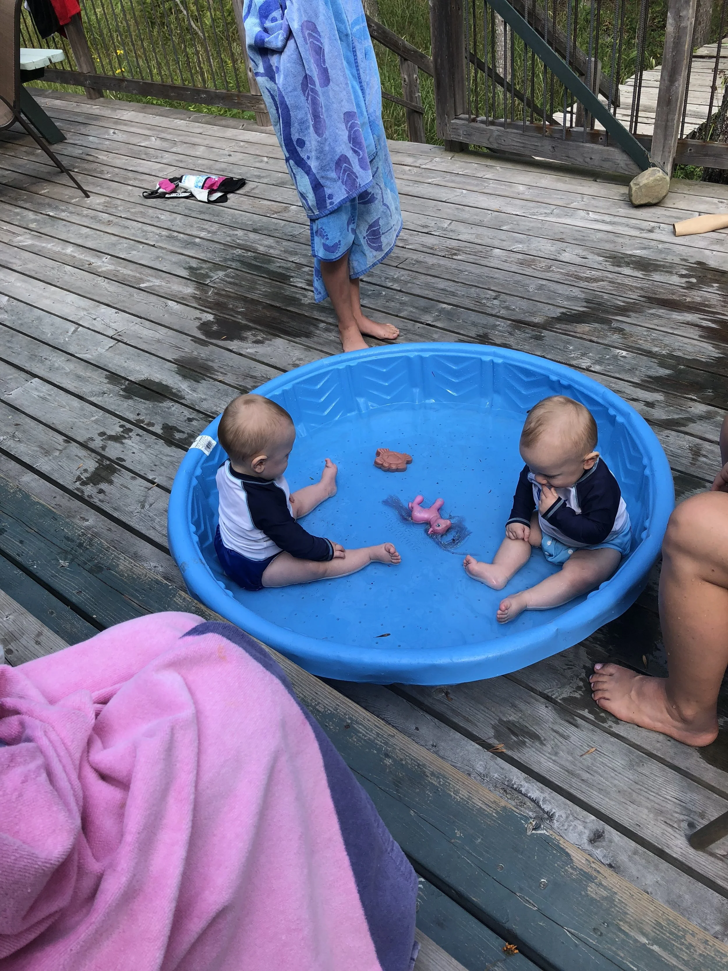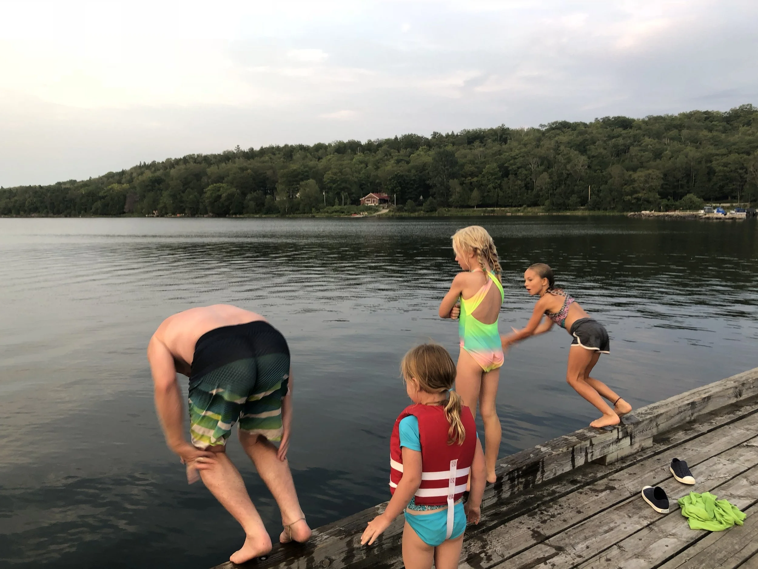 Another day of warm sun and no wind, perfect for the big water pad, and trips to Sandy Beack by jet ski. Also perfect for evening ice cream and jumping off the high dock at sunset.