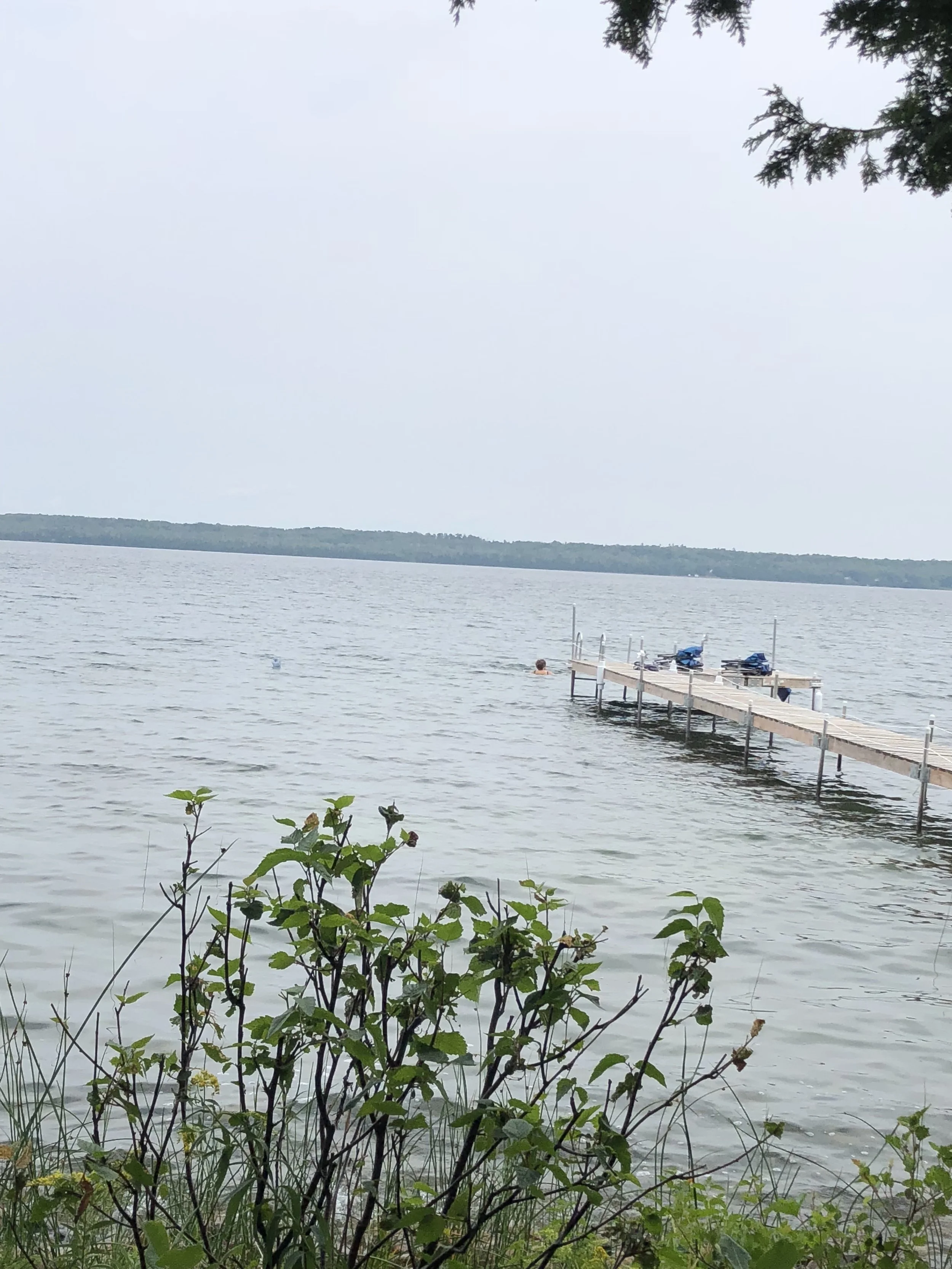 Mostly cloudy with an east wind, but Mimi still got in her daily swim.