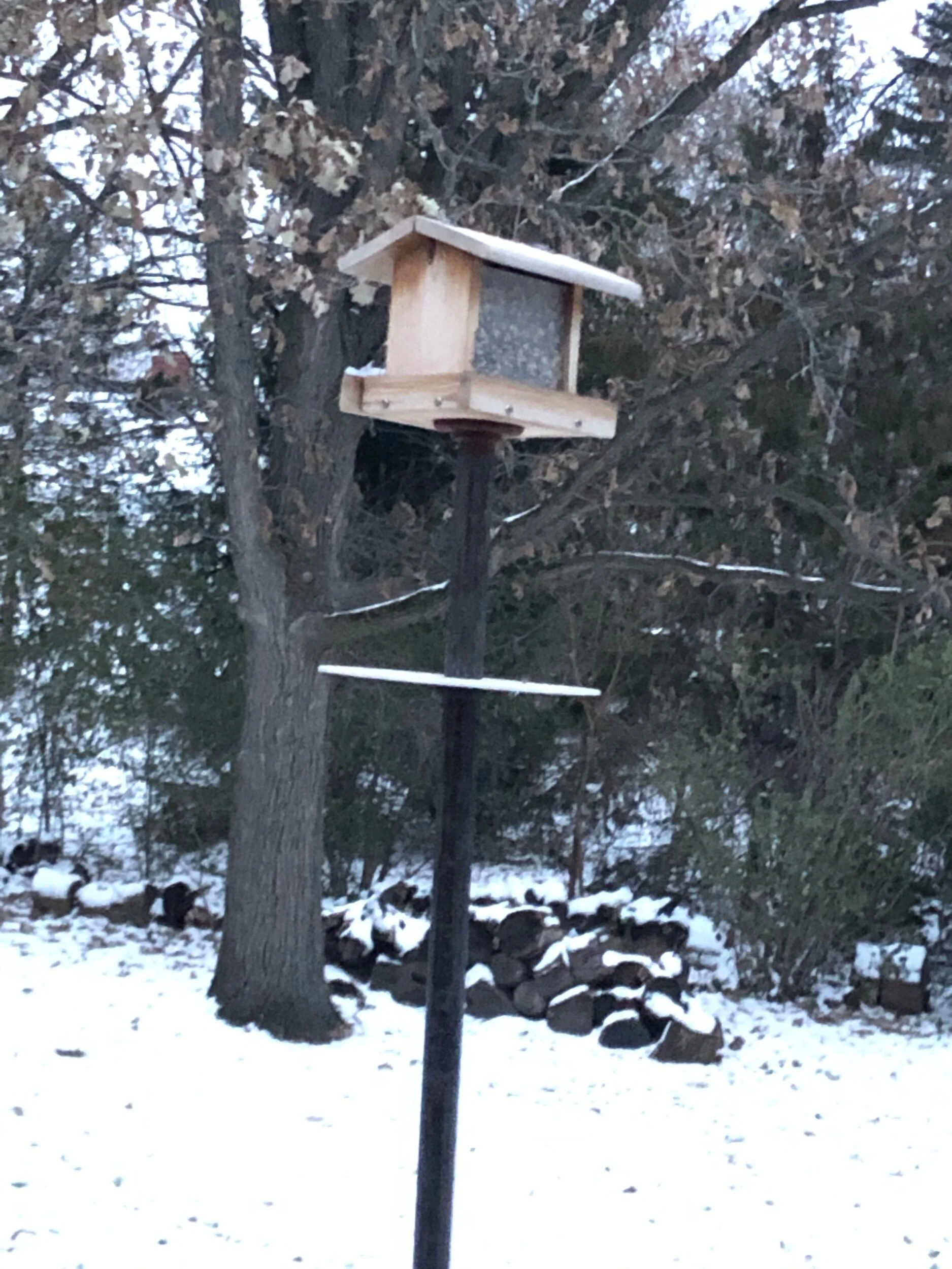 Bird Feeder Up, and… November 13, 2019 by Jim Nies …impeachment hearing observed. Not the most productive day, but interesting. More light snow this evening.