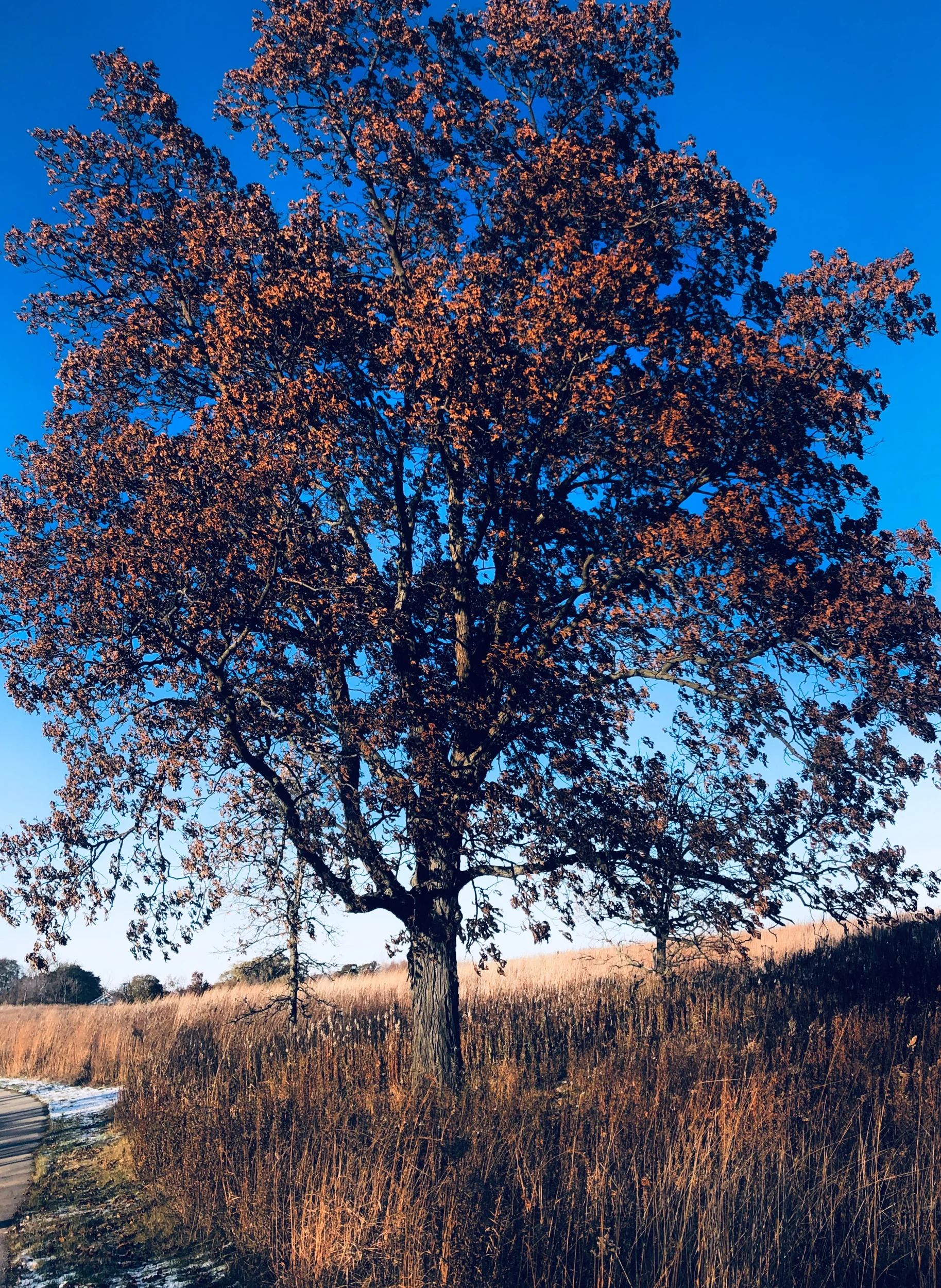 Shagbark hickory holding on to its leaves