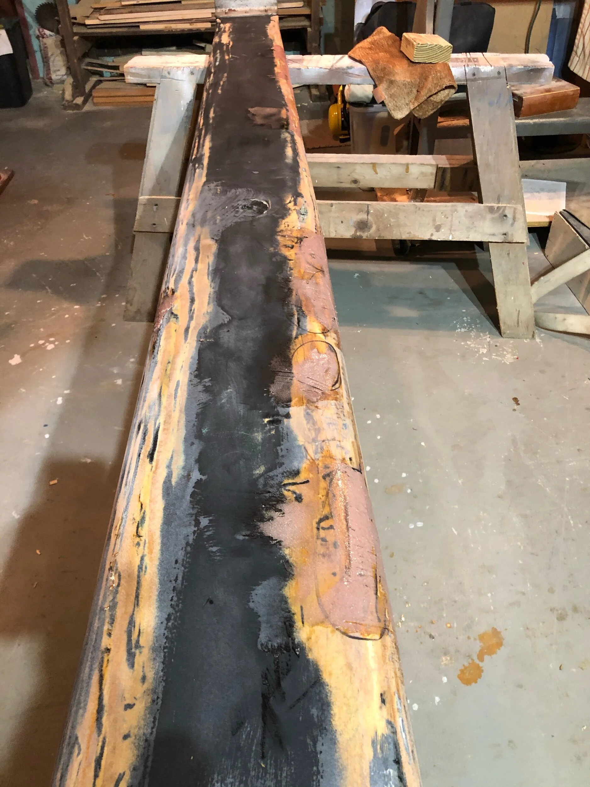 …and more and deeper cold forecast, so could be sailing soon. Time to finish up iceboat plank repair (WEST epoxy with adhesive and fairing fillers).