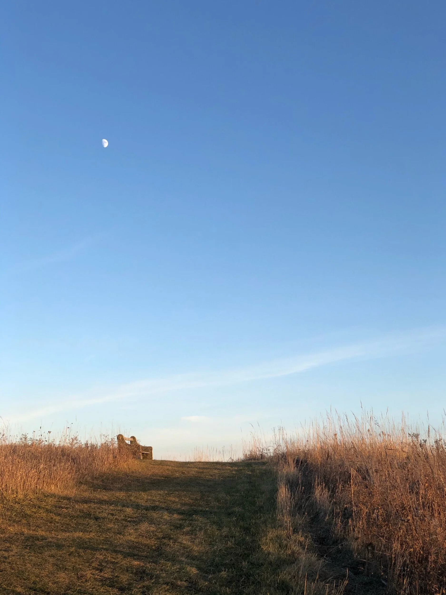 Little wind, and warm enough for a walk to the post office, and then back the long way, as well as a loop around the prairie just before sunset.