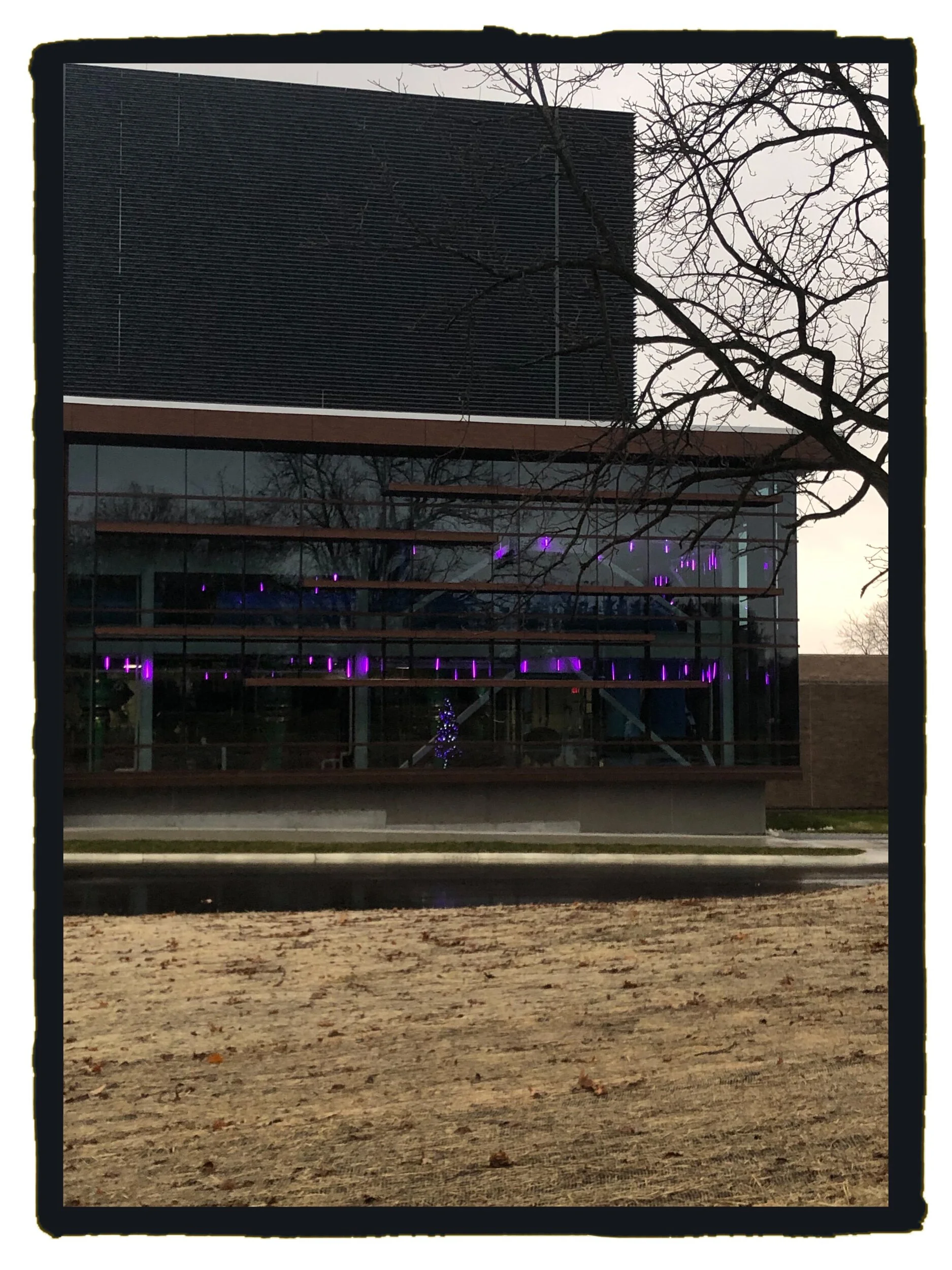 Barometer low, windy, light rain, bottom falling out of the thermometer. Below, more Whitewater shots (overly doctored with a phone app I’m learning). The middle image is of the University’s new cooling plant—apparently it is equipped with a wall made of LEDs, (and I guess that’s good).