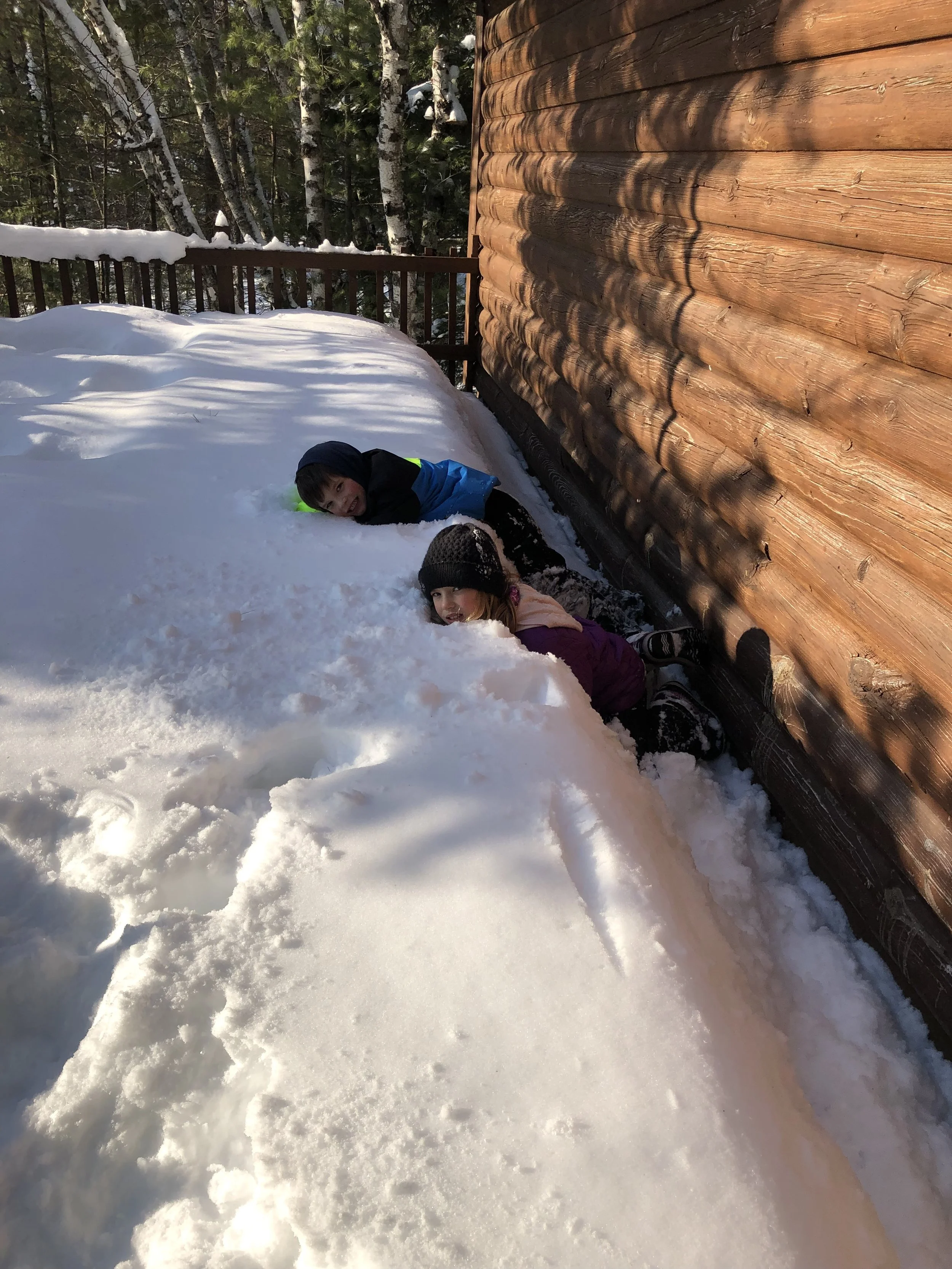 Helping the Janowiec family move into and thaw out their new, fabulous, 100 year-old log cottage in Lac du Flambeau. Snow in some places almost waist deep. Melting snow to flush toilet.