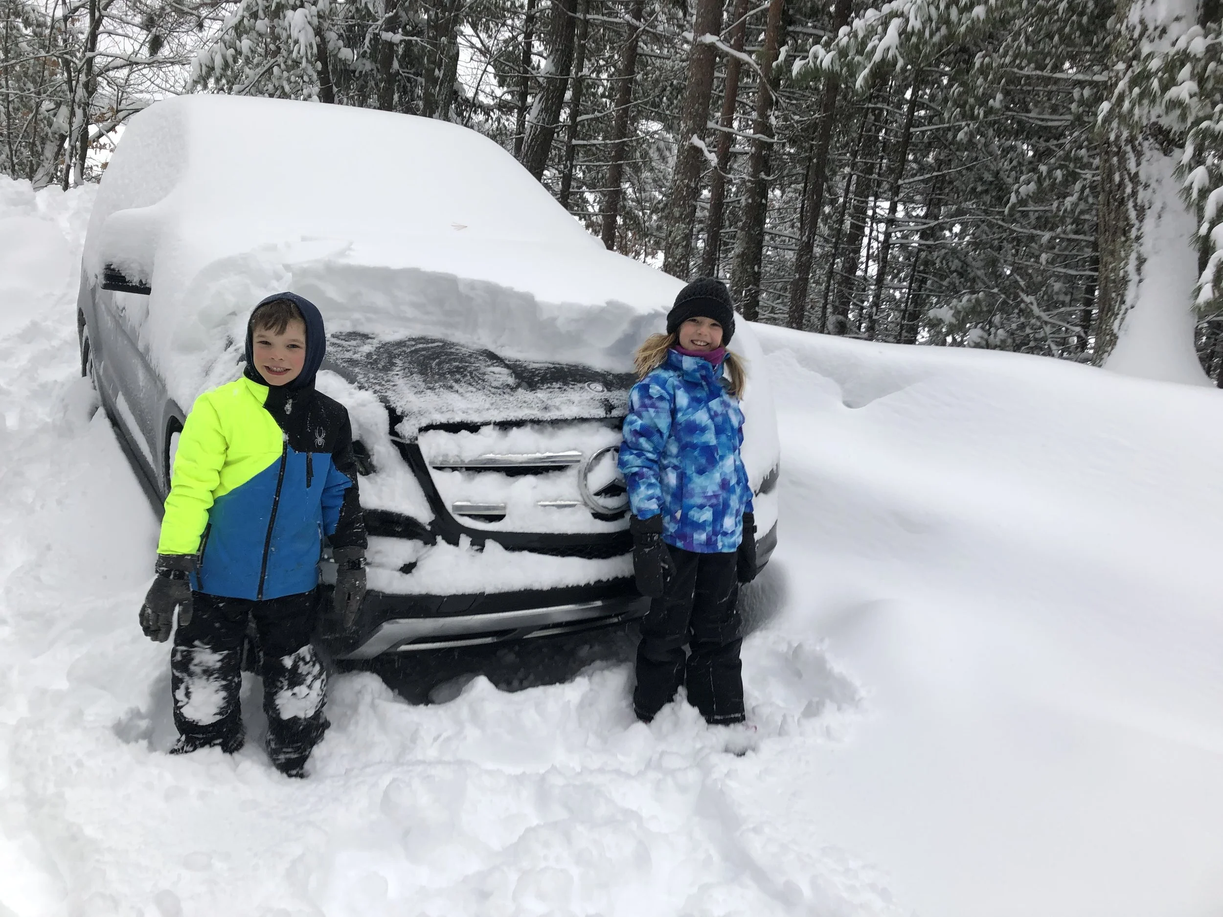 Blizzard in effect all day. Deep, deep snow. But Bruce and Sharon got out (the very long drive).
