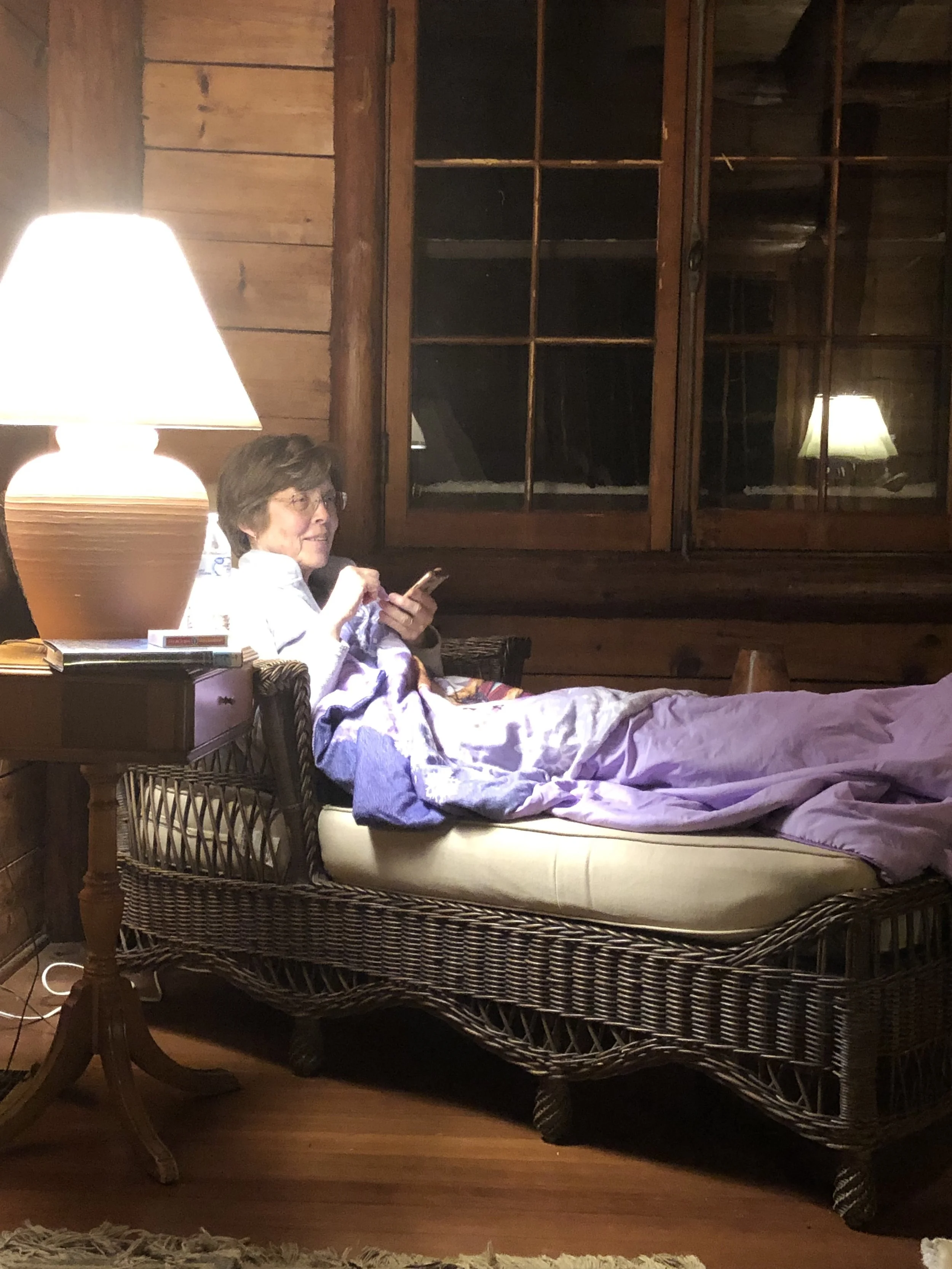 Wind still roaring in the pines and temp dropping below zero. We are snug with coals glowing in the grate.
