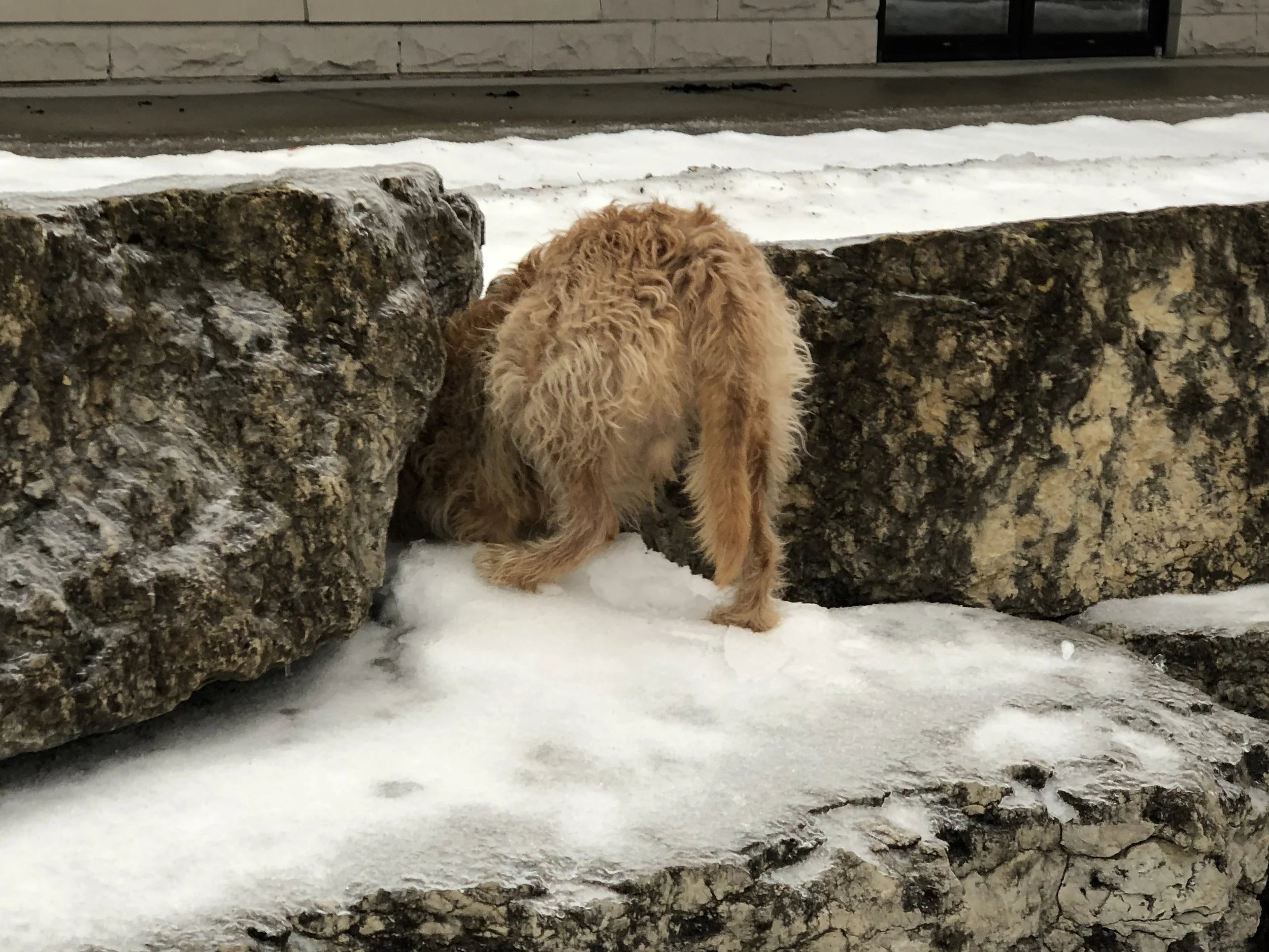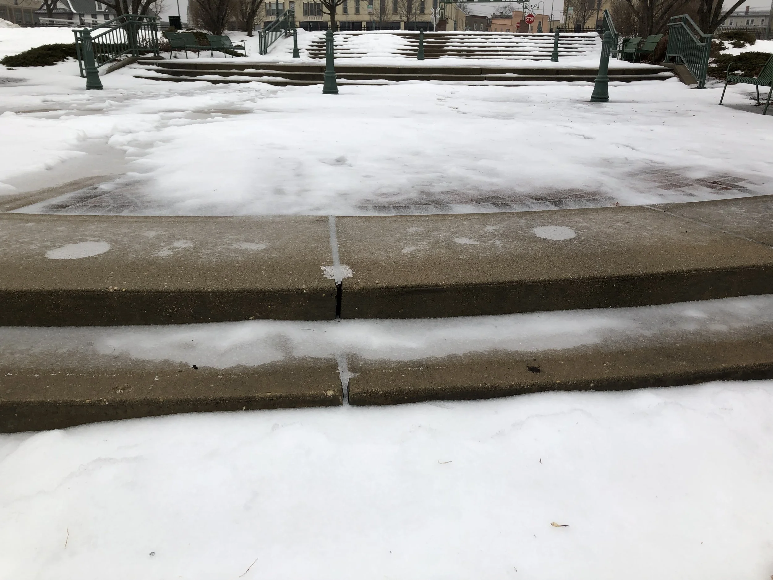Ice over everything. Almost as bad as Saint Paul (where walking was impossible). With the meter never above 32, melting has been limited, and chipping difficult.