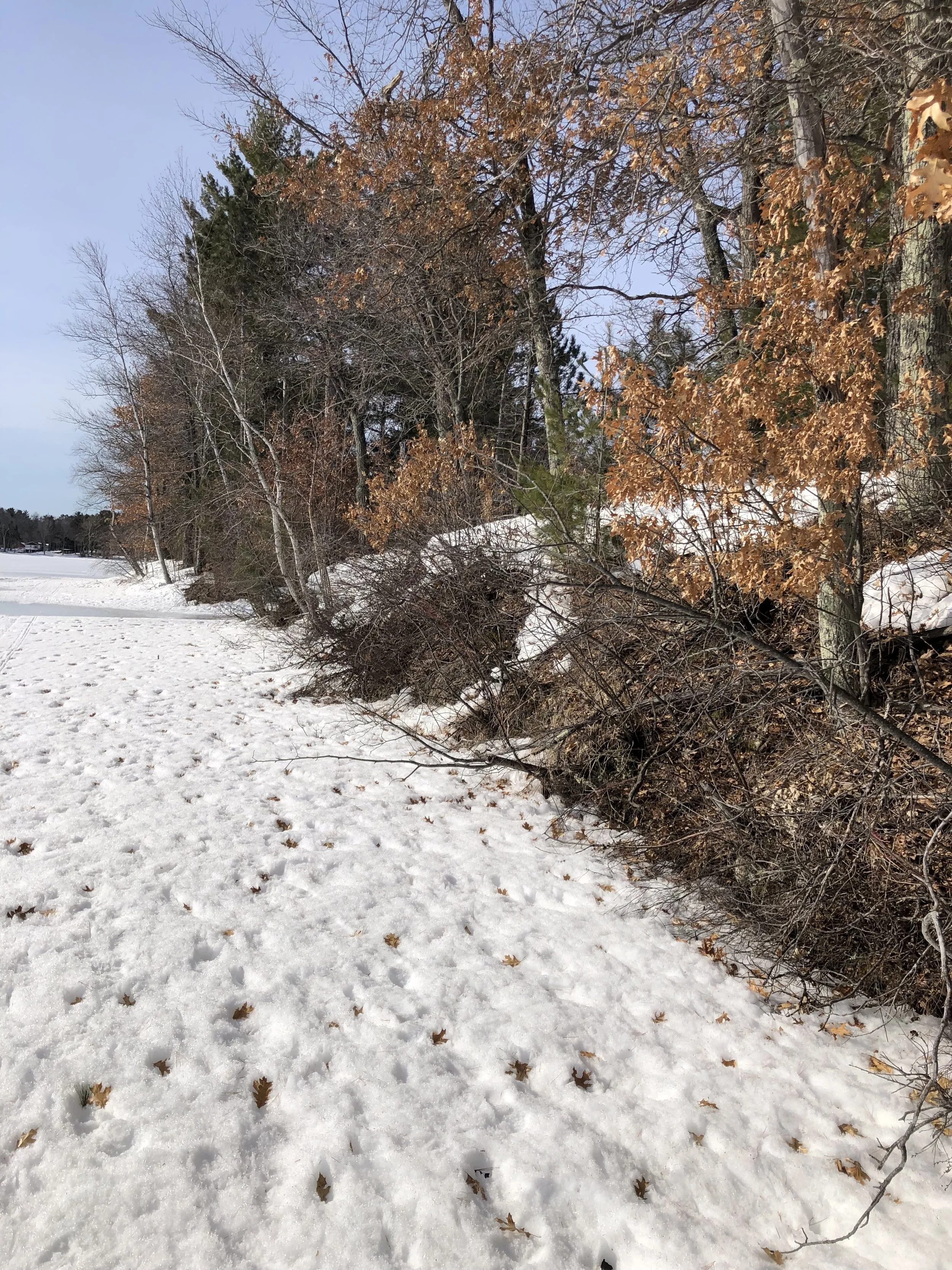 North Woods Day March 26, 2019 by Jim Nies Chipping ice, cleaning closets, hiking to the point, sitting in front of the fire.