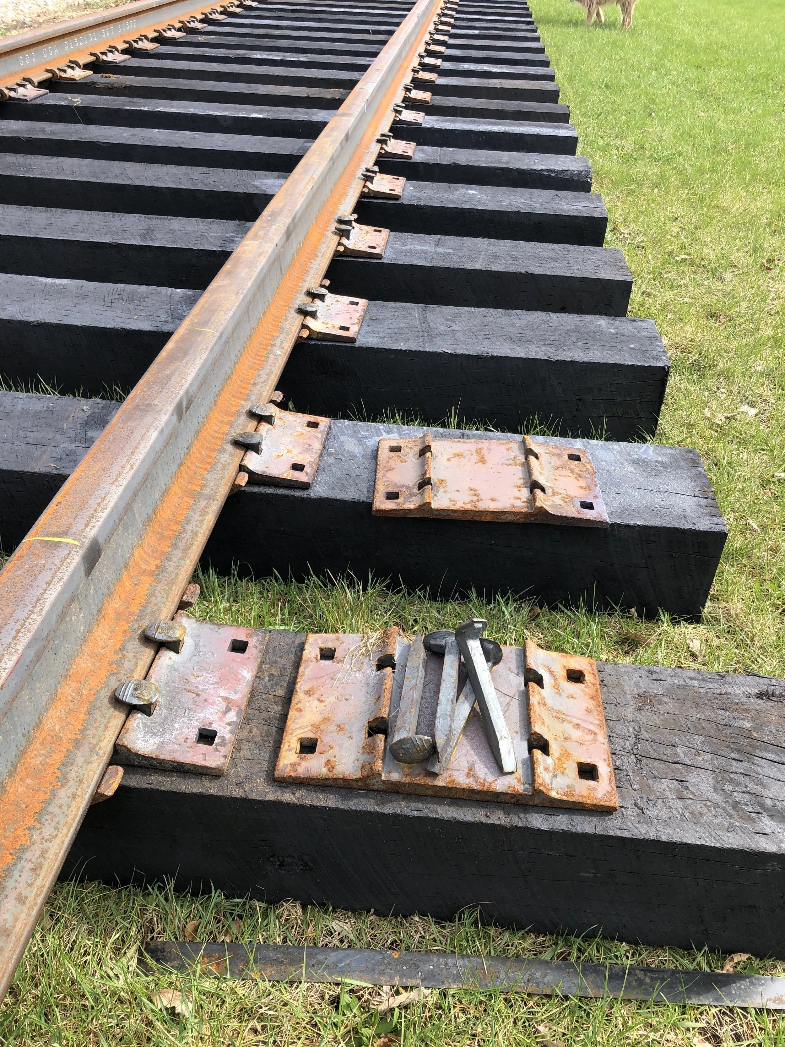 On our walk this morning Pax and I found a long section of unconnected new track (rails and ties) lying on the grass parallel to the existing line. After considerable discussion, and just as a 4-engine freight came rumbling and whistling towards us, we figured out why it was there and where it was going..