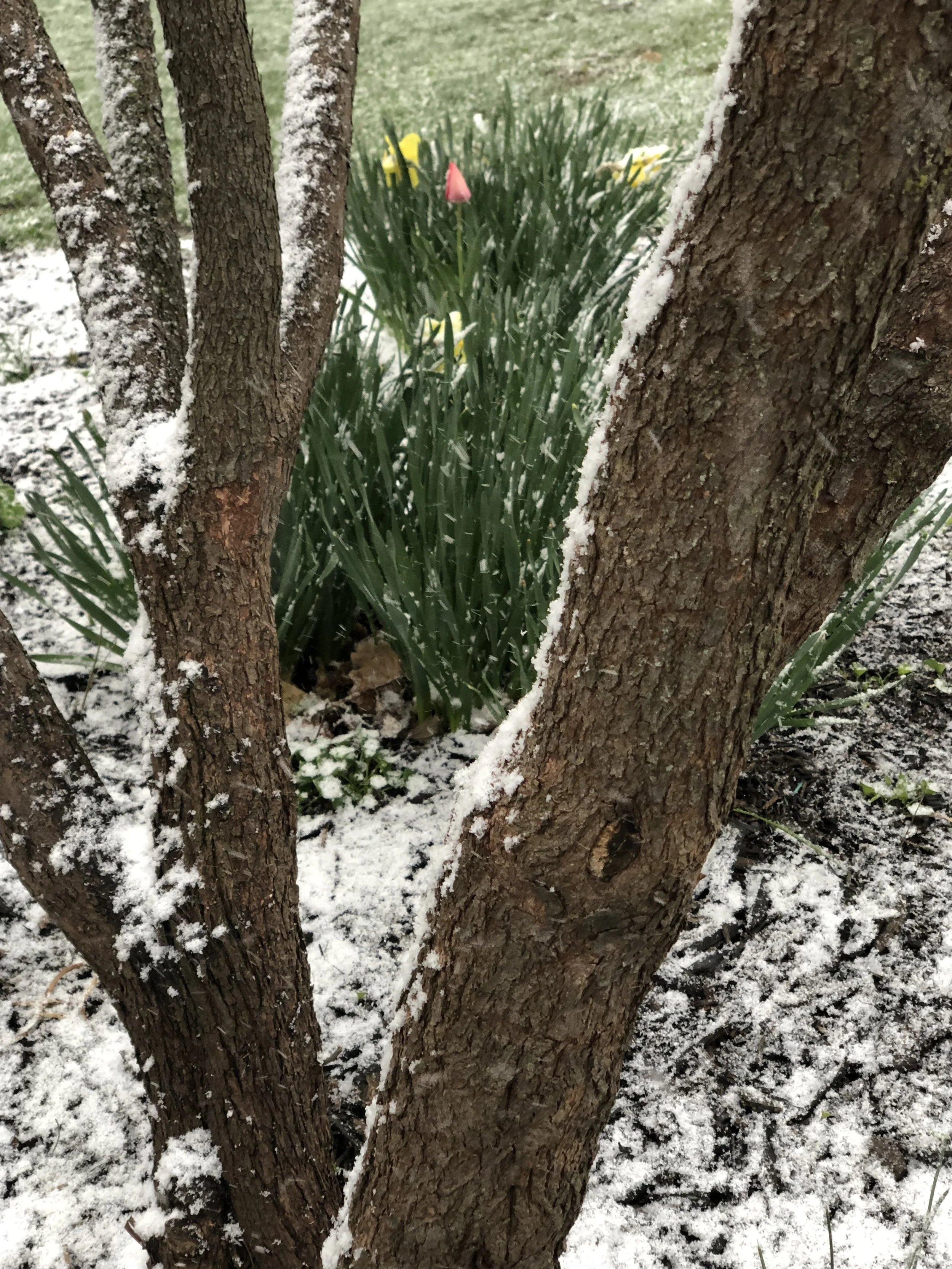 But yes, more snow. The winter storm warning has been downgraded to a couple of inches, and though nothing of substance until 5 p.m., it’s coming down hard now. Good for the recently sown grass seed.