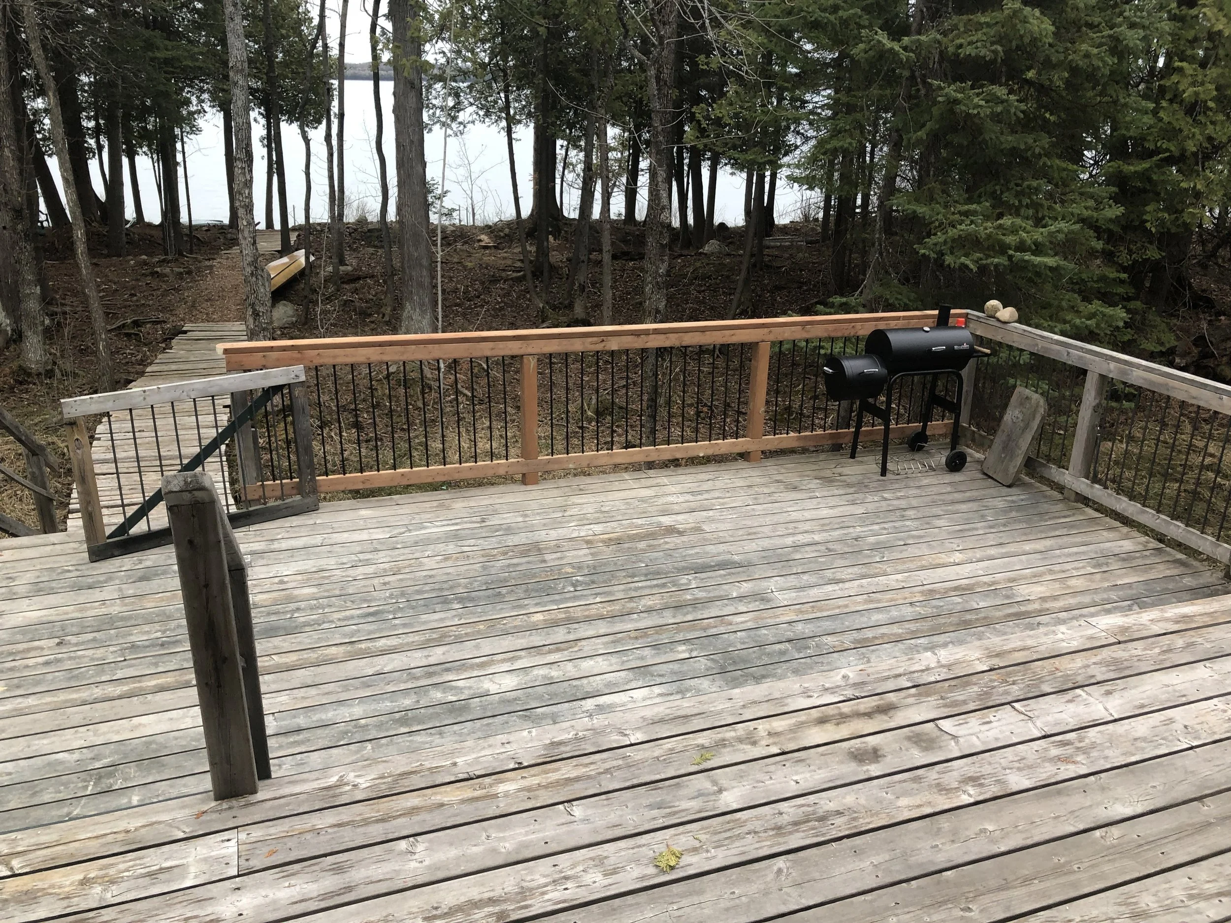 New grill now almost in its permanent location, old grill seriously deformed by avalanche.