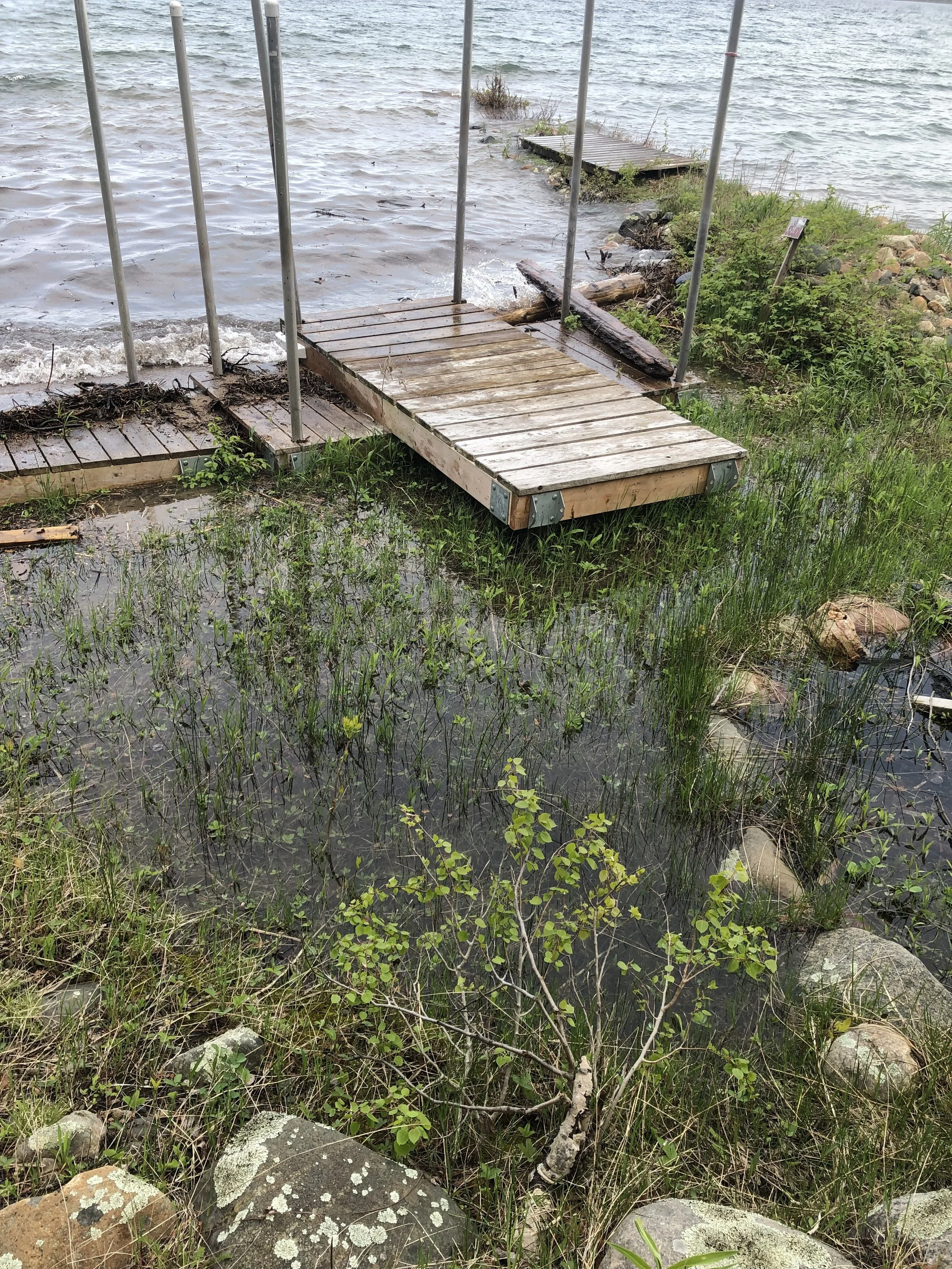 Pier sections and landings moved up as high as they will go, and still getting soaked. Ninebark bushes wading up to their ankles. For us, sitting on the porch, or on the deck, and watching the waves roll in, it’s easy to start imagining that our feet might get wet. Record high water for this time in May. A big Nor’easter could do some real damage.