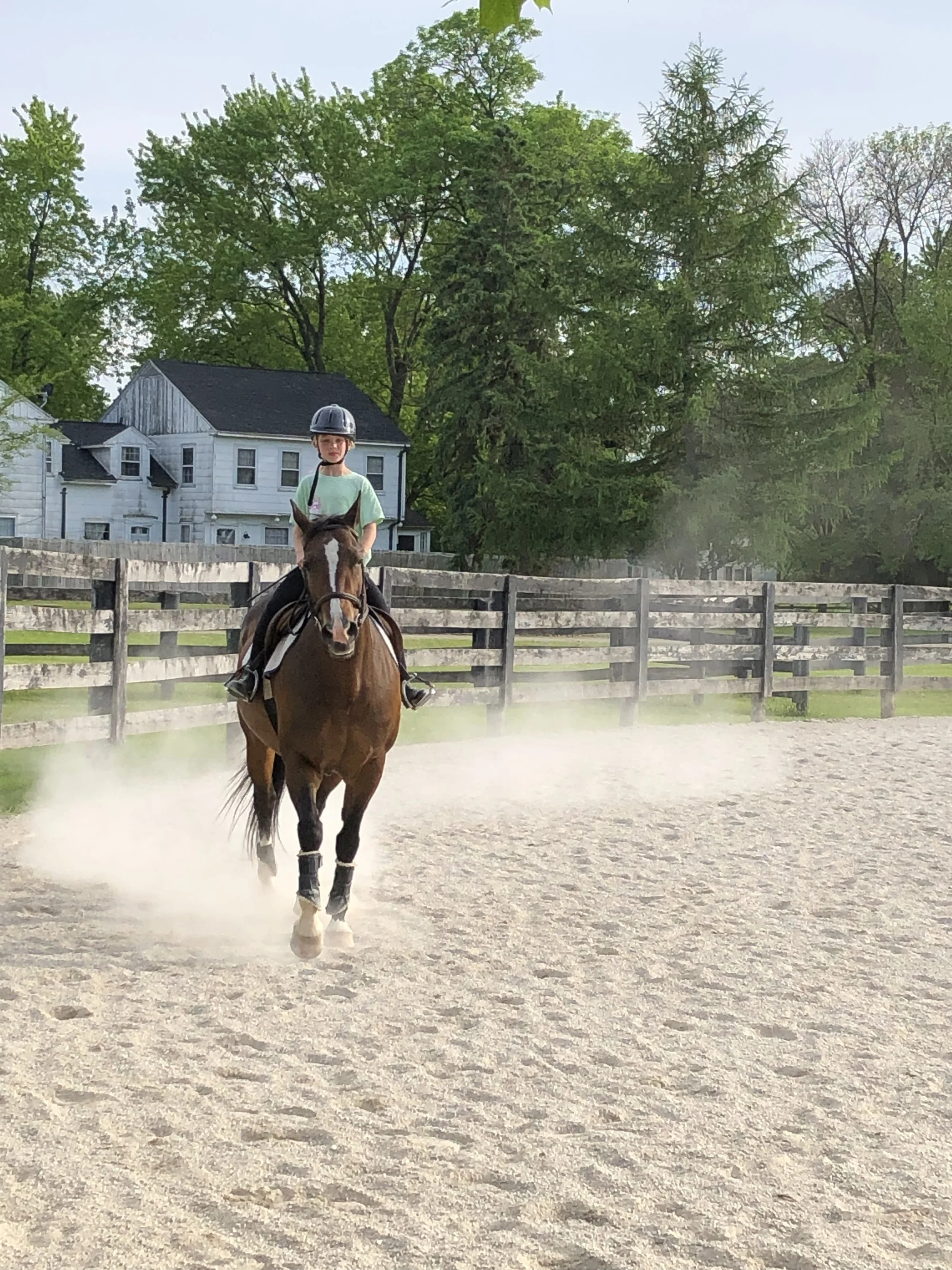 Yard work, managing the green, and then Ellie to riding lessons, at a new place, a beautiful farm, providing a great new teacher.