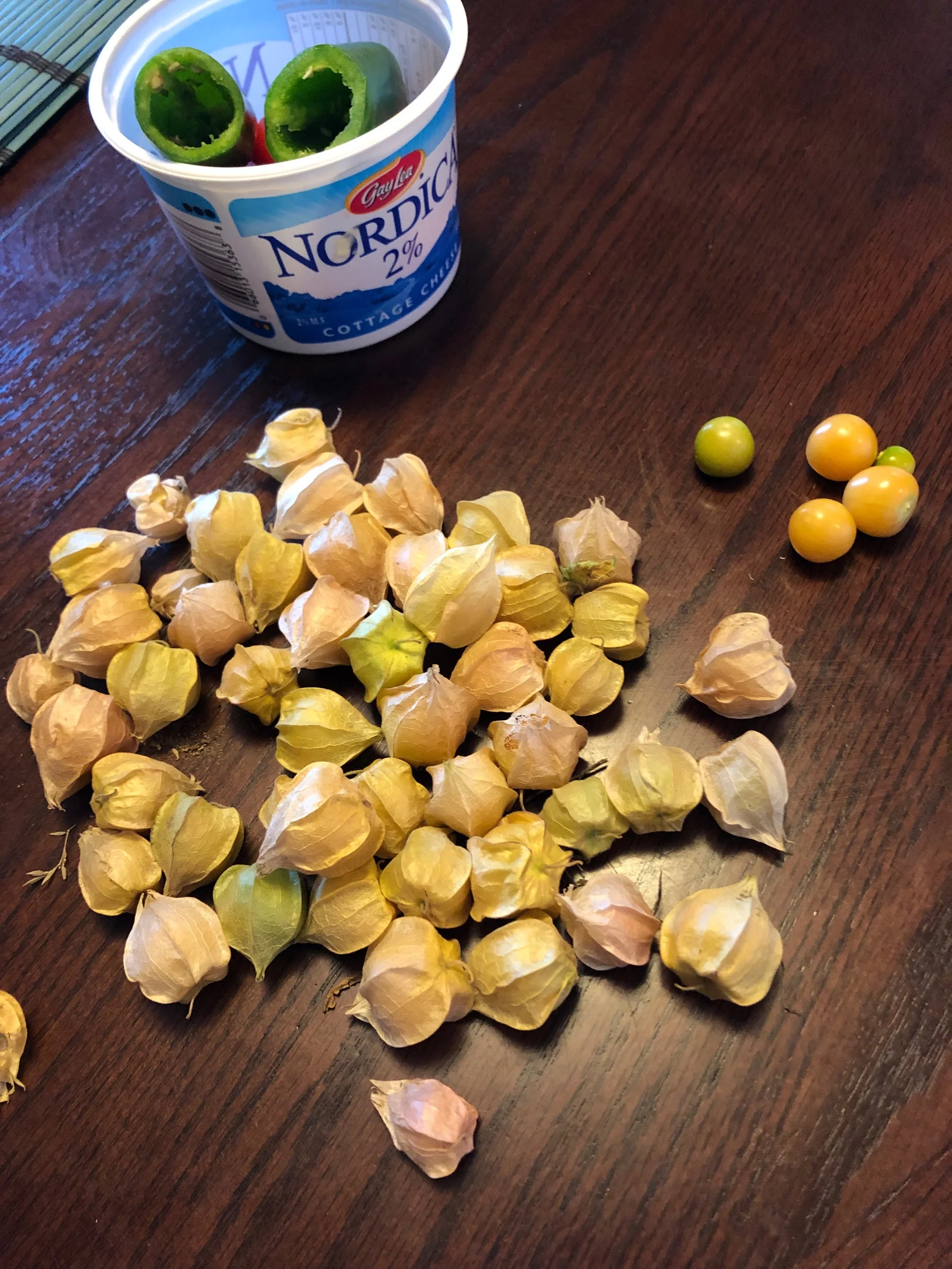 Joint effort with Pinebox on fish (Purvis whitefish dredged and then cooked on our outdoor griddle) tacos, with local ground cherries and side-yard cilantro as part of the pico.