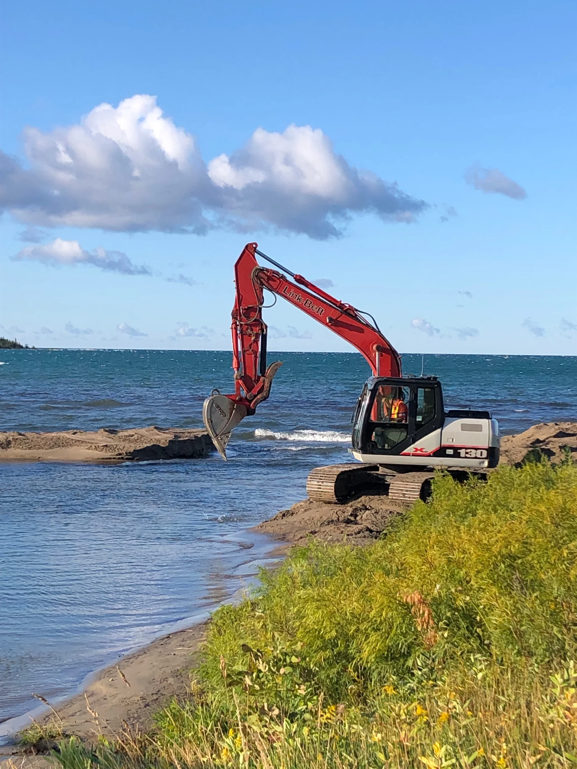 Earlier in the day, in fact very early, over to Prov. Bay to watch dredging of Mindemoya River, done to accommodate salmon schooling offshore.