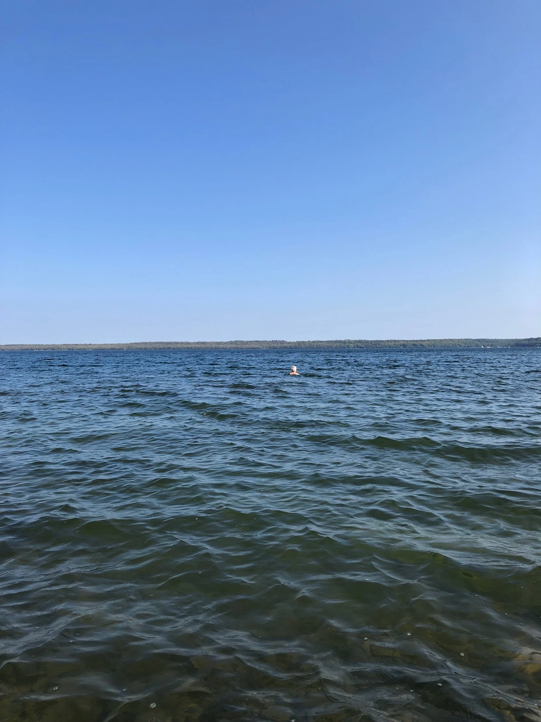 A warm one today, even warm enough to try swimming. And tonight, off to the Cafe In The Woods for a performance by a multiply-instrumented solo instrumentalist.