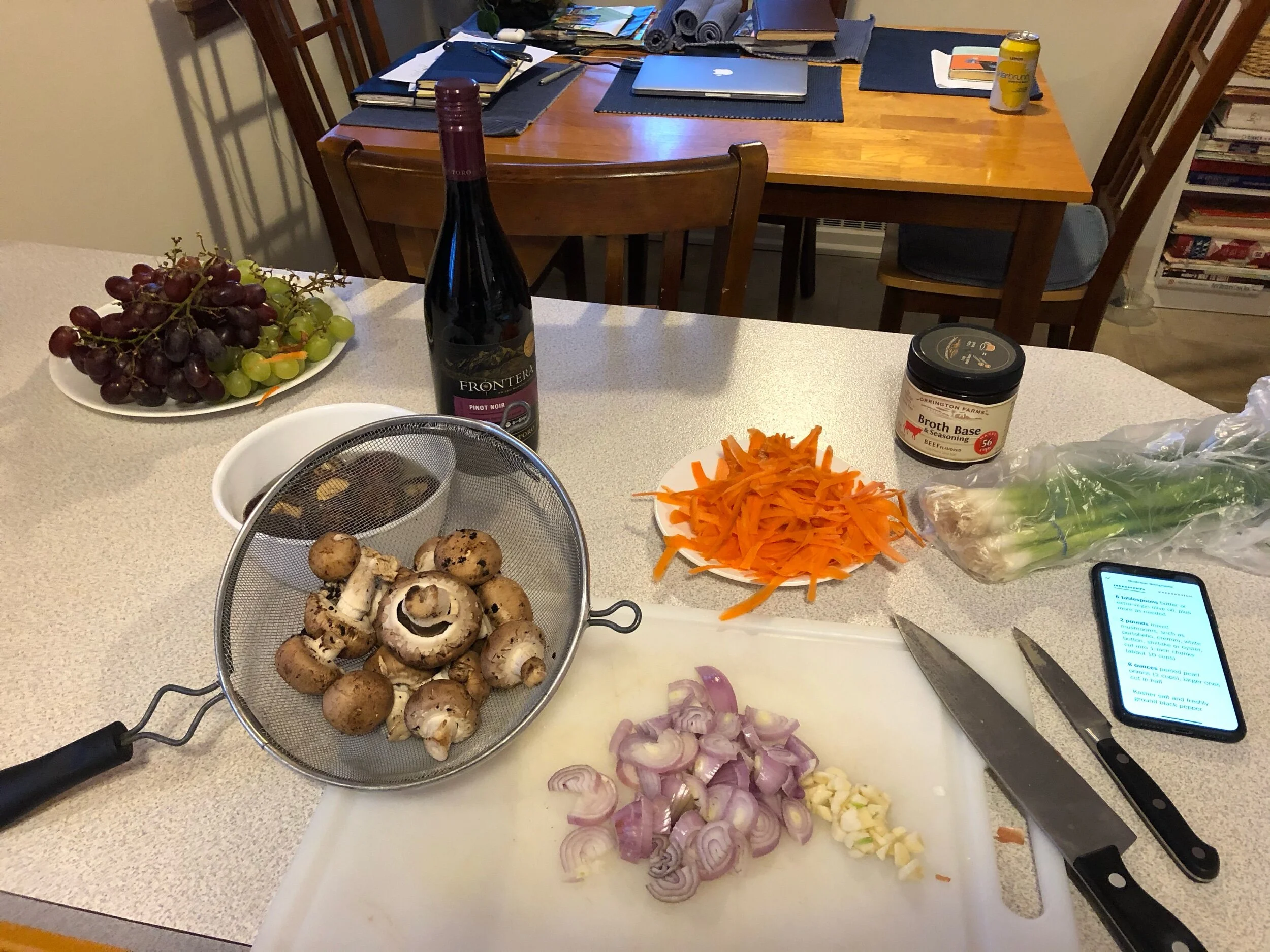On the up side, we have mushroom Bourguignon for dinner. (Photos below.)