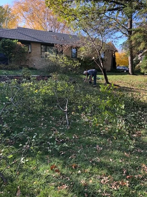 Busy day here. In addition to swapping screens for storm windows, we chopped down the old apple tree (yes, the very same tree Ellie and Maddie used as a reading perch two days ago).