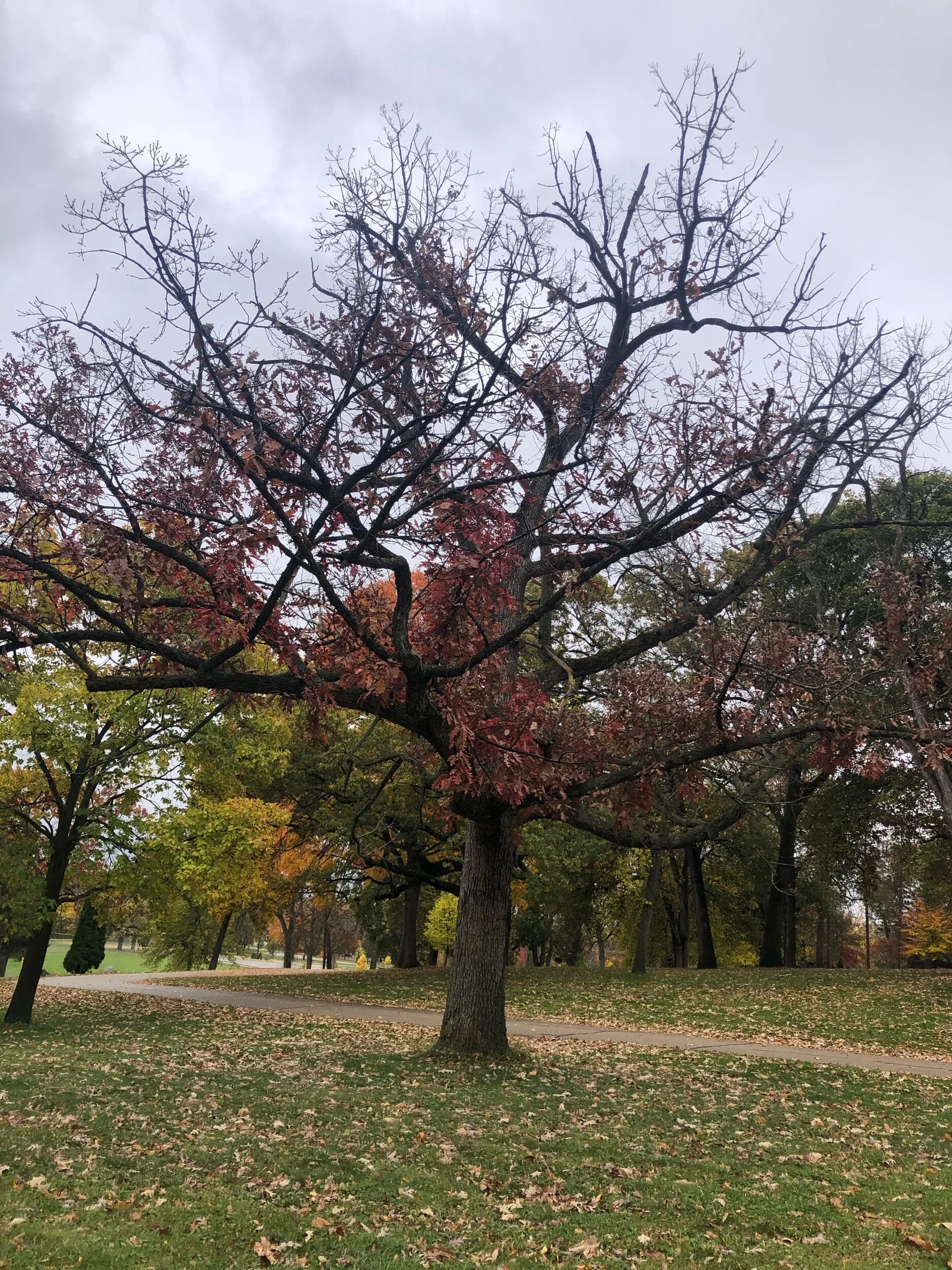 Not all the trees in Starin Park are doing that well. I think I might use this poor oak on my Halloween card.